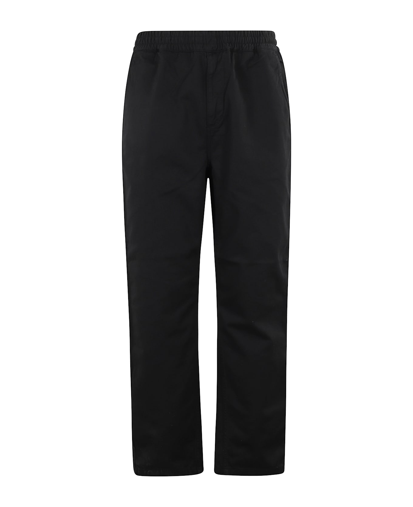 Flint pants - Carhartt Wip - black color - drawstring and elastic waistband - zippered flap - side welt pockets - back patch pockets with sewn-in logo - loose fit