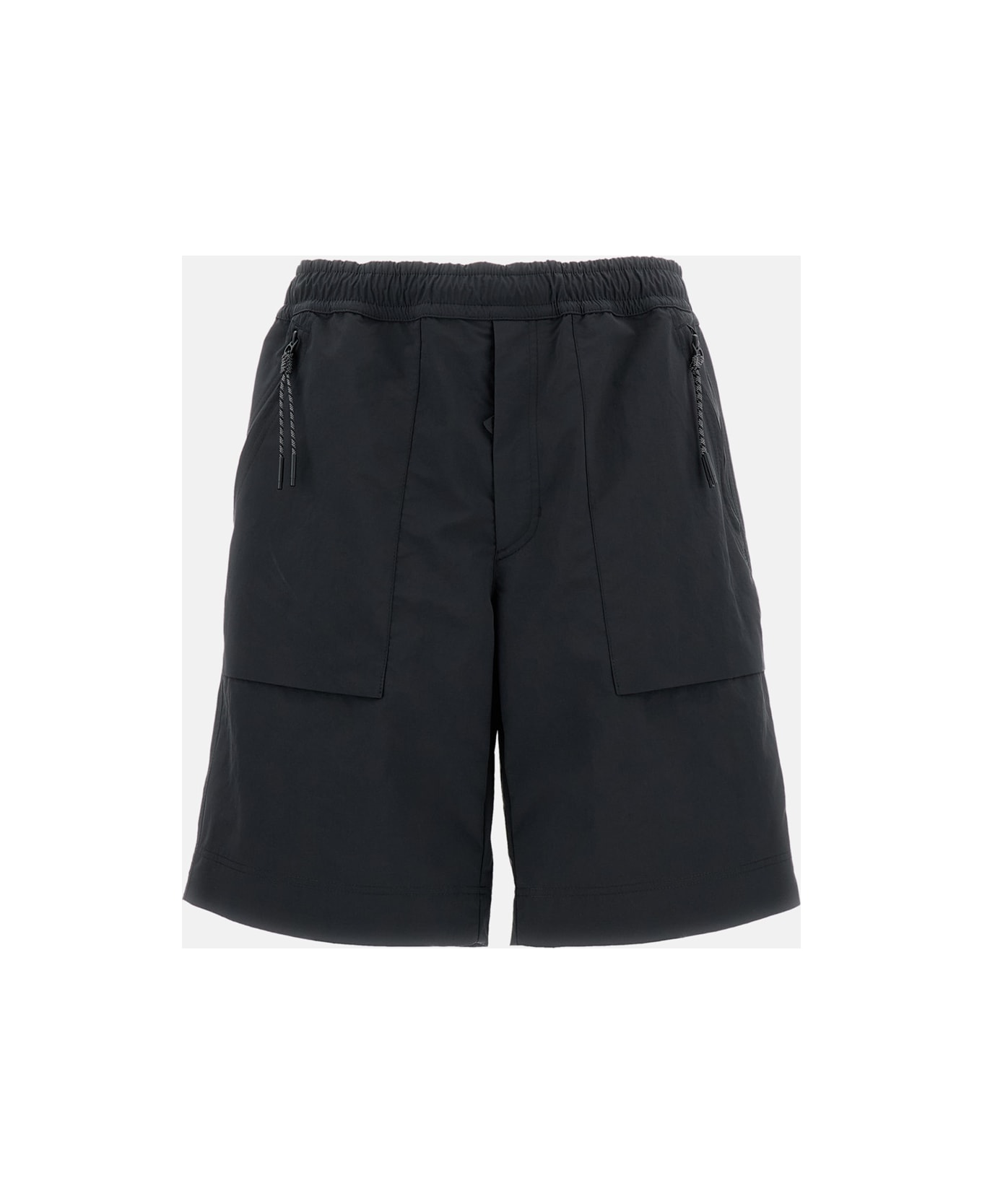 Casual shorts crafted in tech twill Elasticated waistband with adjustable drawstring Moncler felt logo patch on the leg. Side slit pockets and a rear patch pocket. Straight-cut design and regular fit. Color: Black