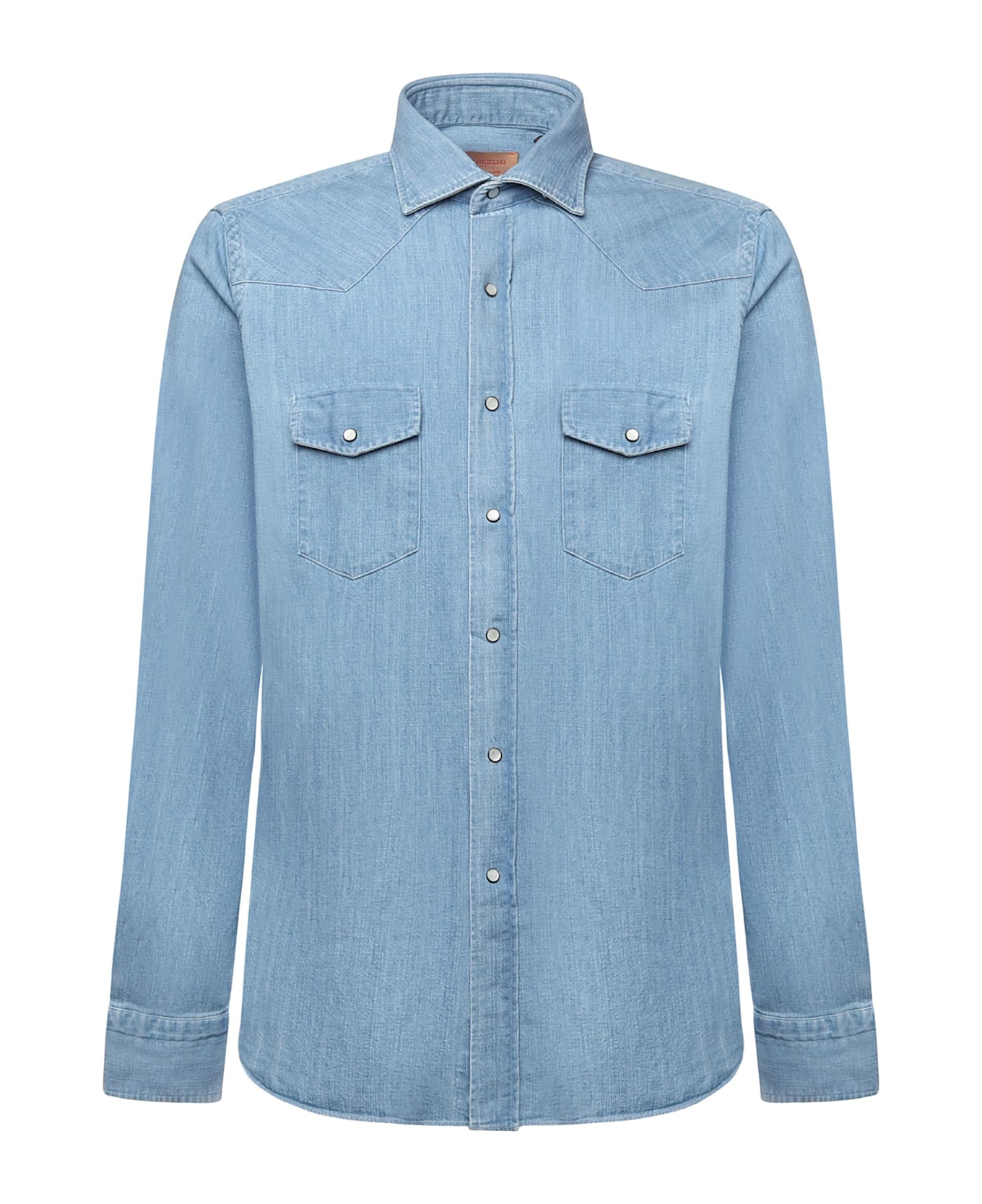 -Made of cotton denim -Front button closure -Two chest pockets -Buttoned cuffs -Made in Italy -Regular fit -The size shown in the photo is 39 -Color: Light Blue