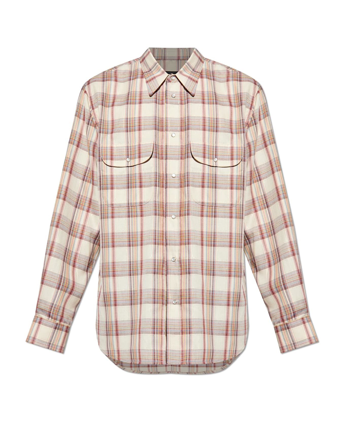 Imbued with refined sophistication, this beige checkered shirt from Dsquared2 captivates with a harmonious blend of classic and contemporary. The shirt boasts a straight, subtly relaxed silhouette with timeless long sleeves finished in button cuffs and a delicately curved hem, embodying modern versatility. Its vibrant, multi-colored check pattern distinguished by bold stripes of red, yellow, and navy evokes an effortless casual elegance atop a textured woven fabric. Carefully crafted from premium natural fibers interwoven with glimmering lurex thread, the fabric reveals a discreet shimmer for a uniquely distinguished touch. Signature details include two generously sized, rounded chest pockets with flaps, seamlessly merging practical function with thoughtful design. This distinctive piece perfectly reflects Dsquared2's renowned fusion of North American glamor with Italian refinement crafted for those who cherish the art of alternative luxury. Why choose this product? Exquisitely tailored by the visionary Dsquared2 duo Distinctive check pattern with elegant lurex sparkle Premium textured materials ensure comfort and durability Functional design with spacious chest pockets Versatile for casual sophistication or elevated everyday wear