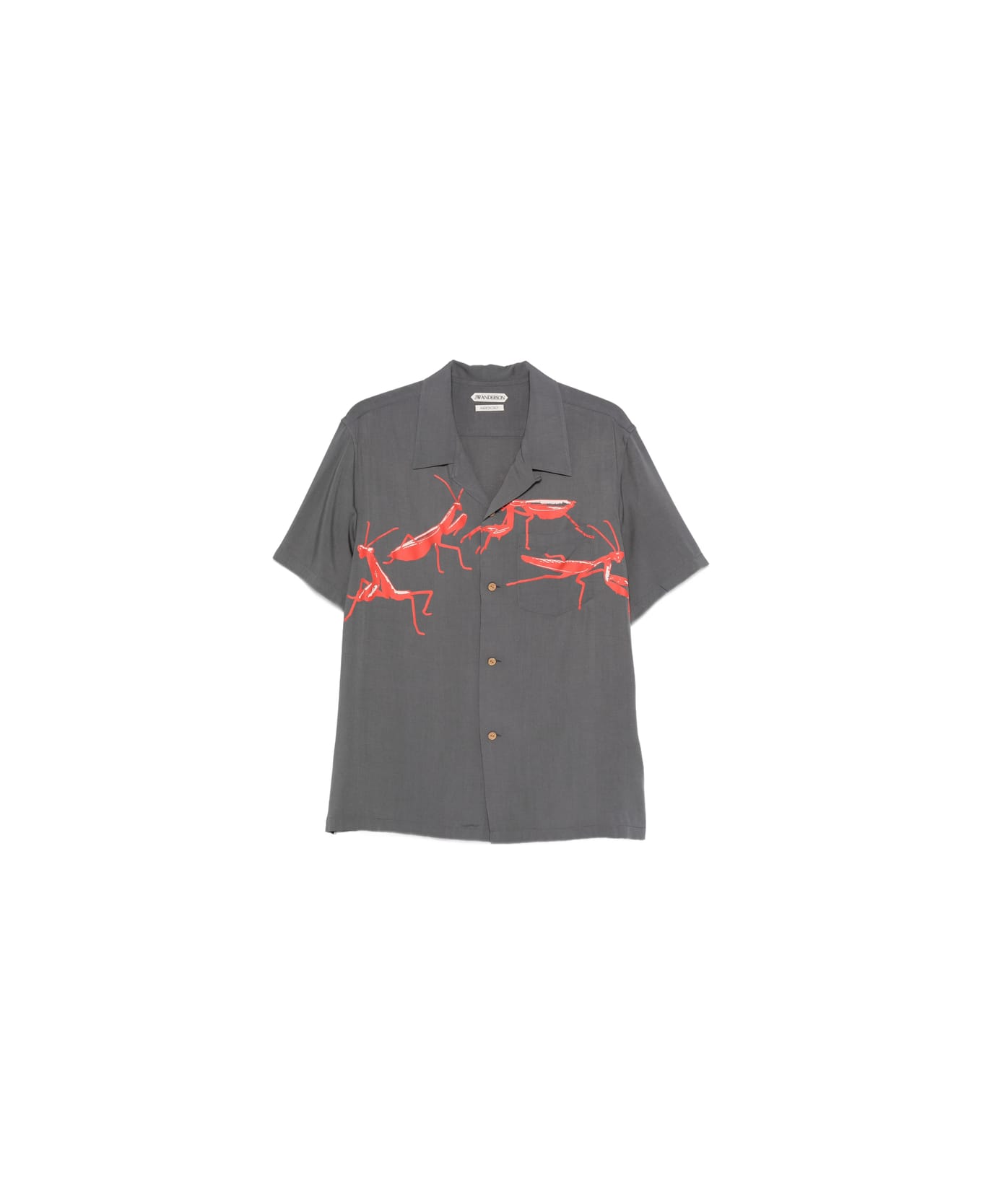grey graphic print button fastening chest pocket short sleeves point collar