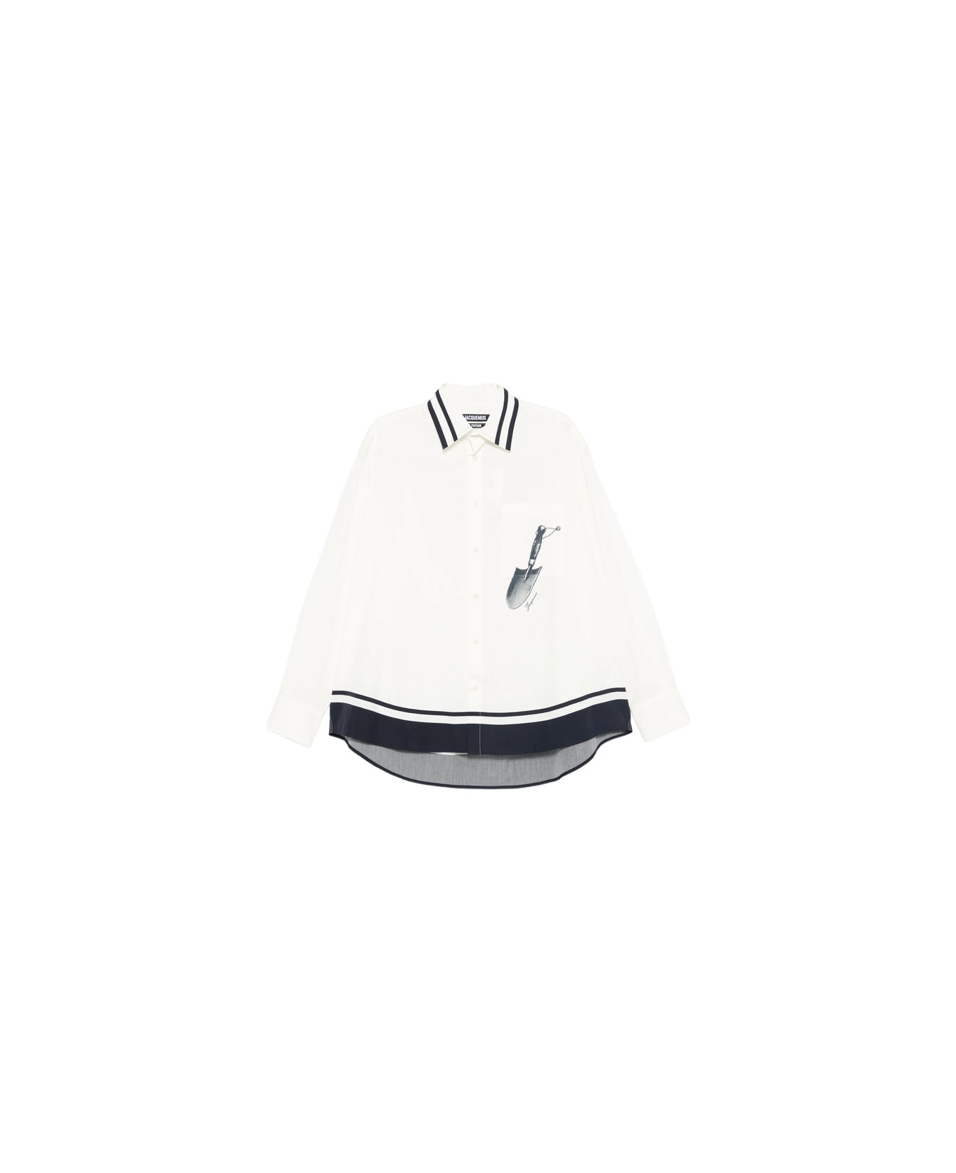 beige graphic print striped trim chest pocket button fastening long sleeves