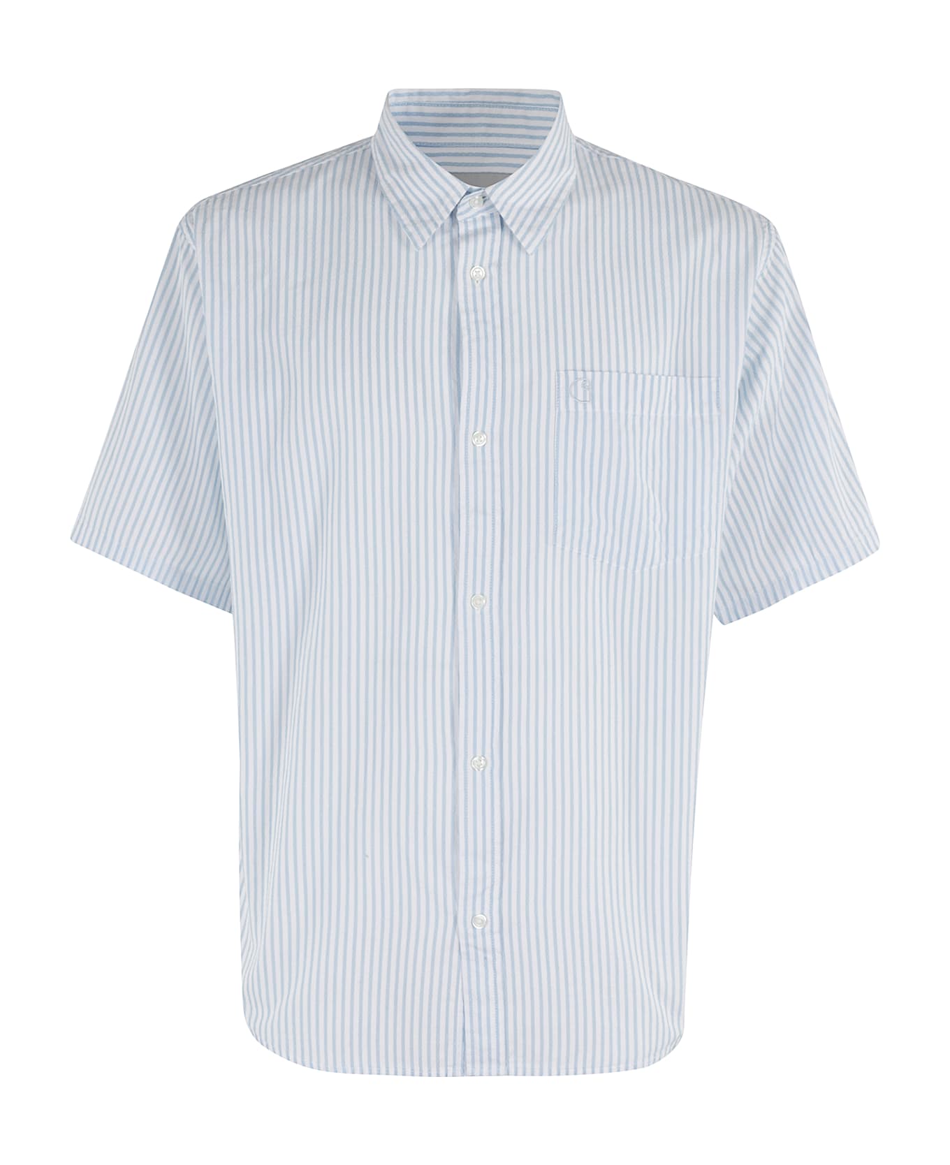 Phelps shirt - Carhartt WIP - Light blue and white color - Classic collar - Short sleeve - Patch pocket on chest - Front button closure - Over fit