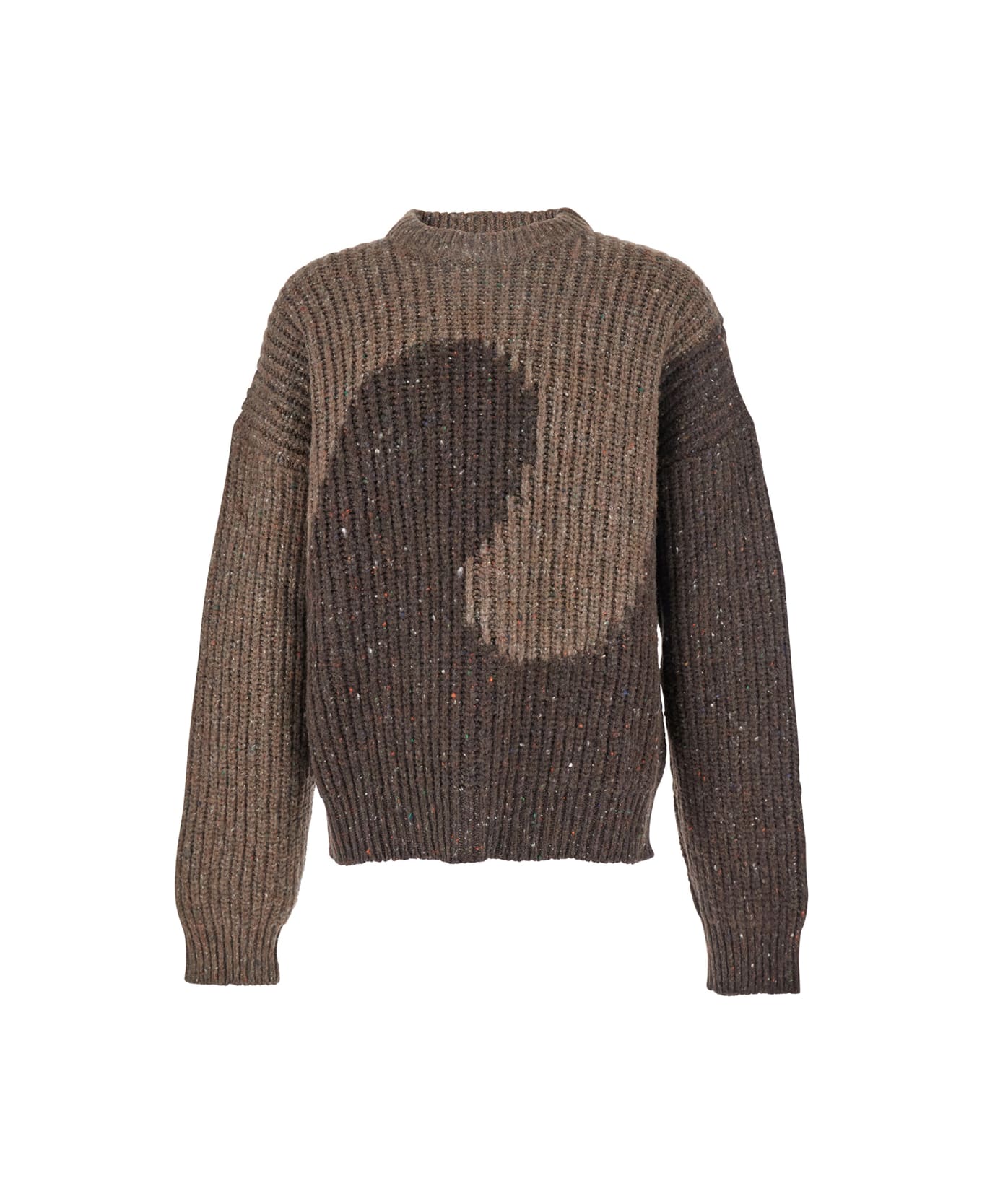 Brown Knit Crewneck Sweater With Bicolor Motif In Wool Blend Man