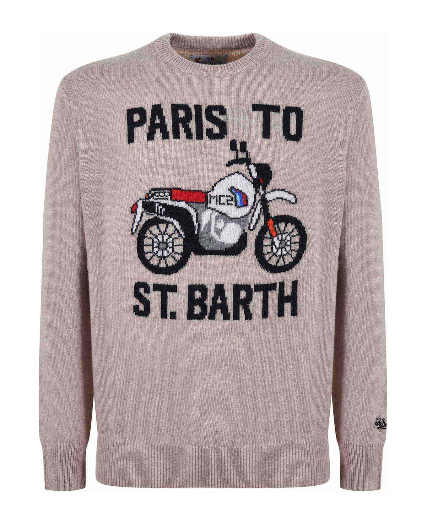 MC2 Saint Barth sweater in wool and cashmere blend Beige melange. "Paris to St. Barth" front inlay. Ribbed crew neck. Long sleeve. Ribbed cuffs and bottom. Measurement in photo M 35% wool, 30% viscose, 20% cashmere, 15% polyamide Made in Italy Composition: Misto Lana E Cashmere