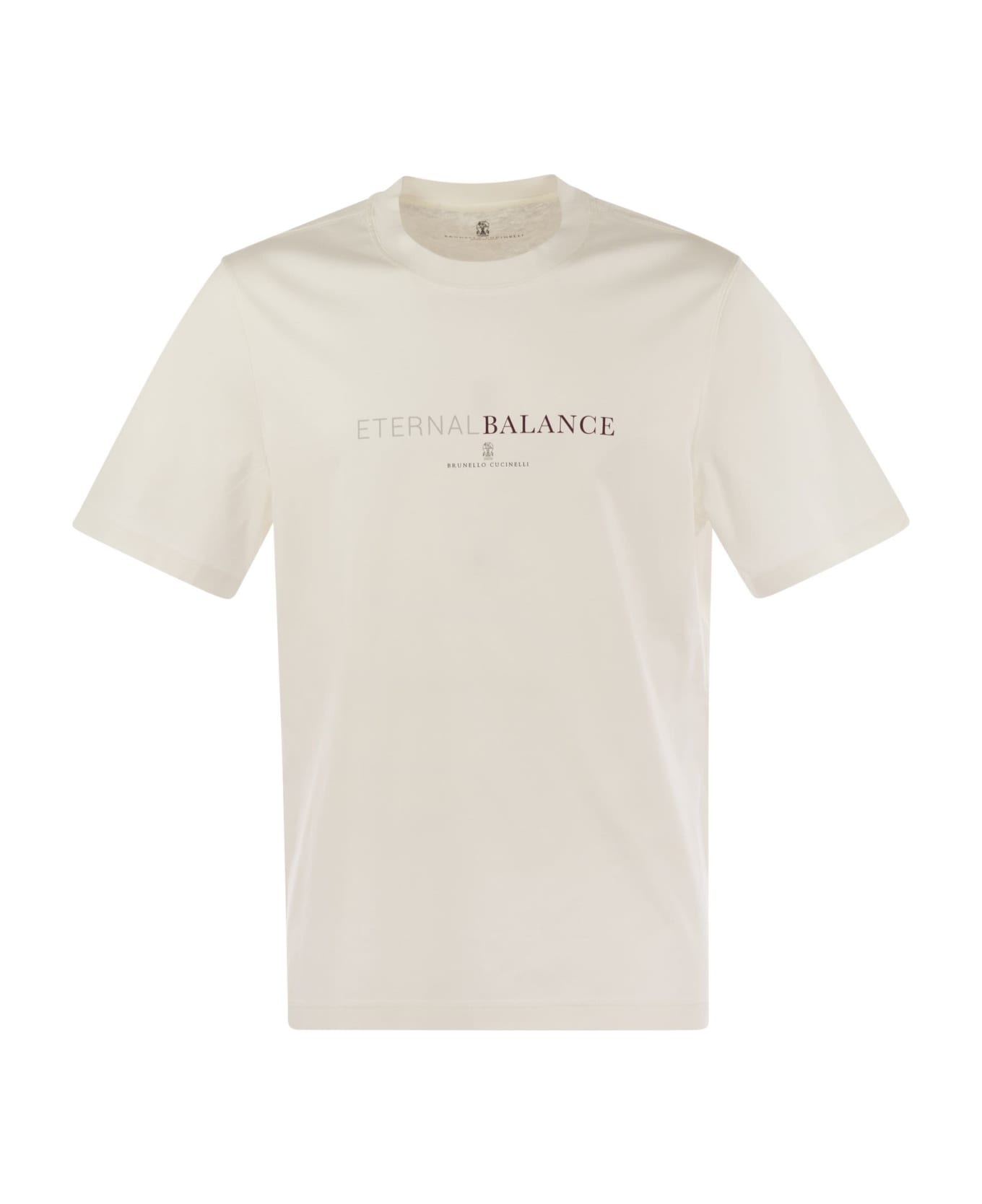 A seasonal print enriches the style of this casual cotton jersey T-shirt. The words Eternal Balance stand out on the smooth and soft texture of the fabric. The garment features straight and comfortable lines. - Crew neck - Hem with riveted hem - Sleeves with riveted hems DESIGNER ID: M0B138433 CPH87 Composition: 100% Cotton