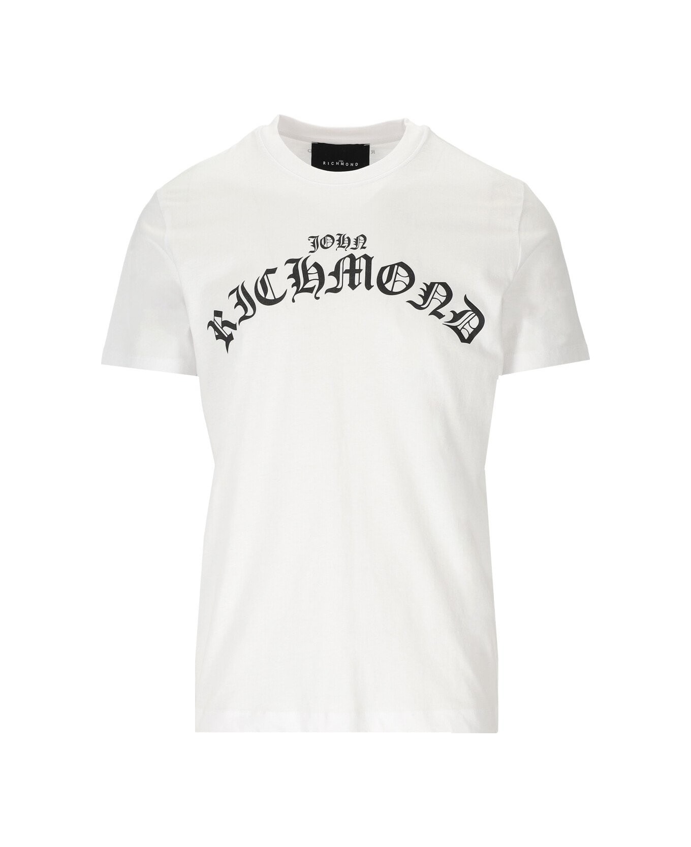 John Richmond Levadia t-shirt made of white cotton, decorated with a gothic style front logo. Composition: 100% cotton.