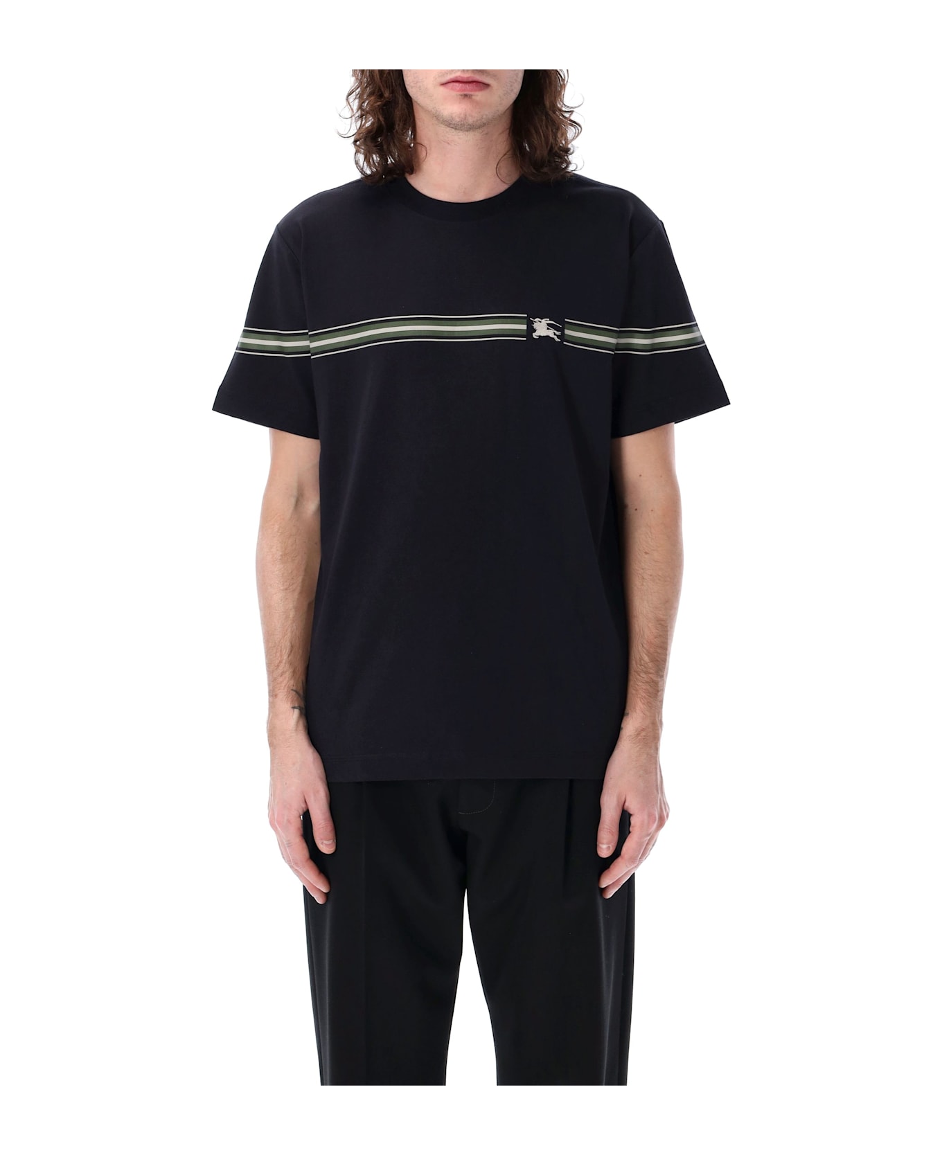 Striped Cotton T-shirt By Burberry London. Featuring: Ribbed Crew Neck Short Sleeves Embroidered Equestrian Knight Design At Chest Slim Fit Model Is 1,90 M And Wears Size L