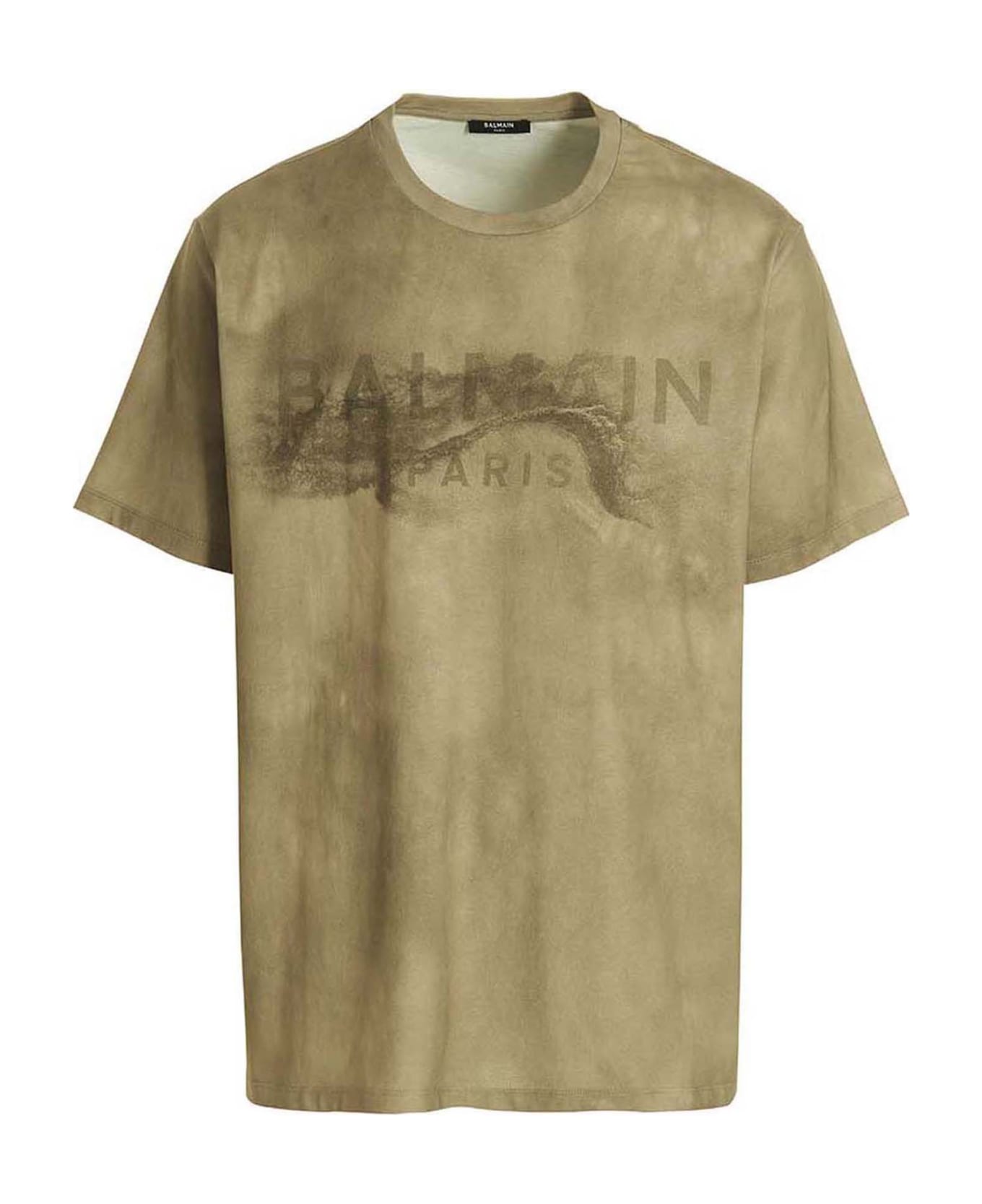 Desert Balmain' cotton, crewneck t-shirt with short sleeves, front logo print. Composition: 100% cotton