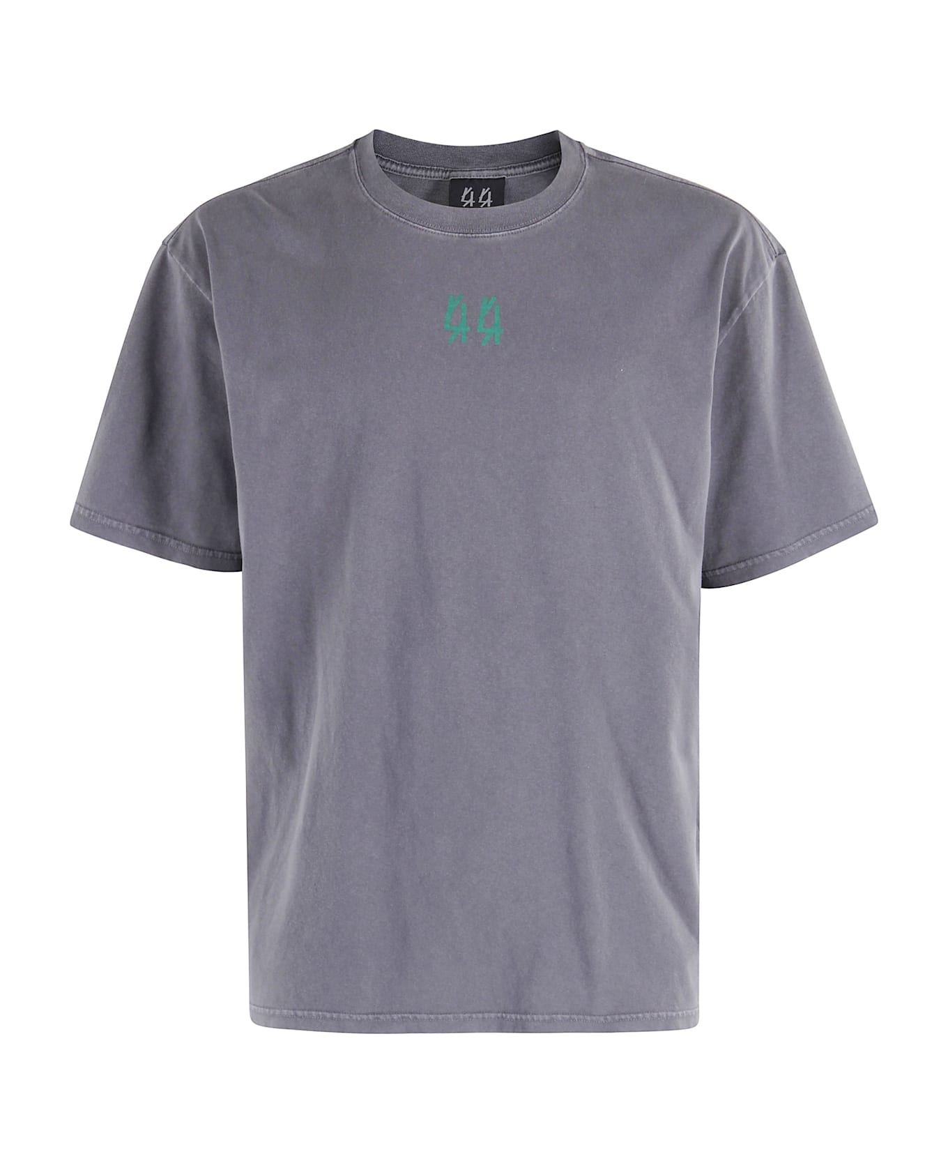 T-shirt - 44 label group - Grey color - Crew neck - Short sleeves - Green logo print on front - Green logo print on back