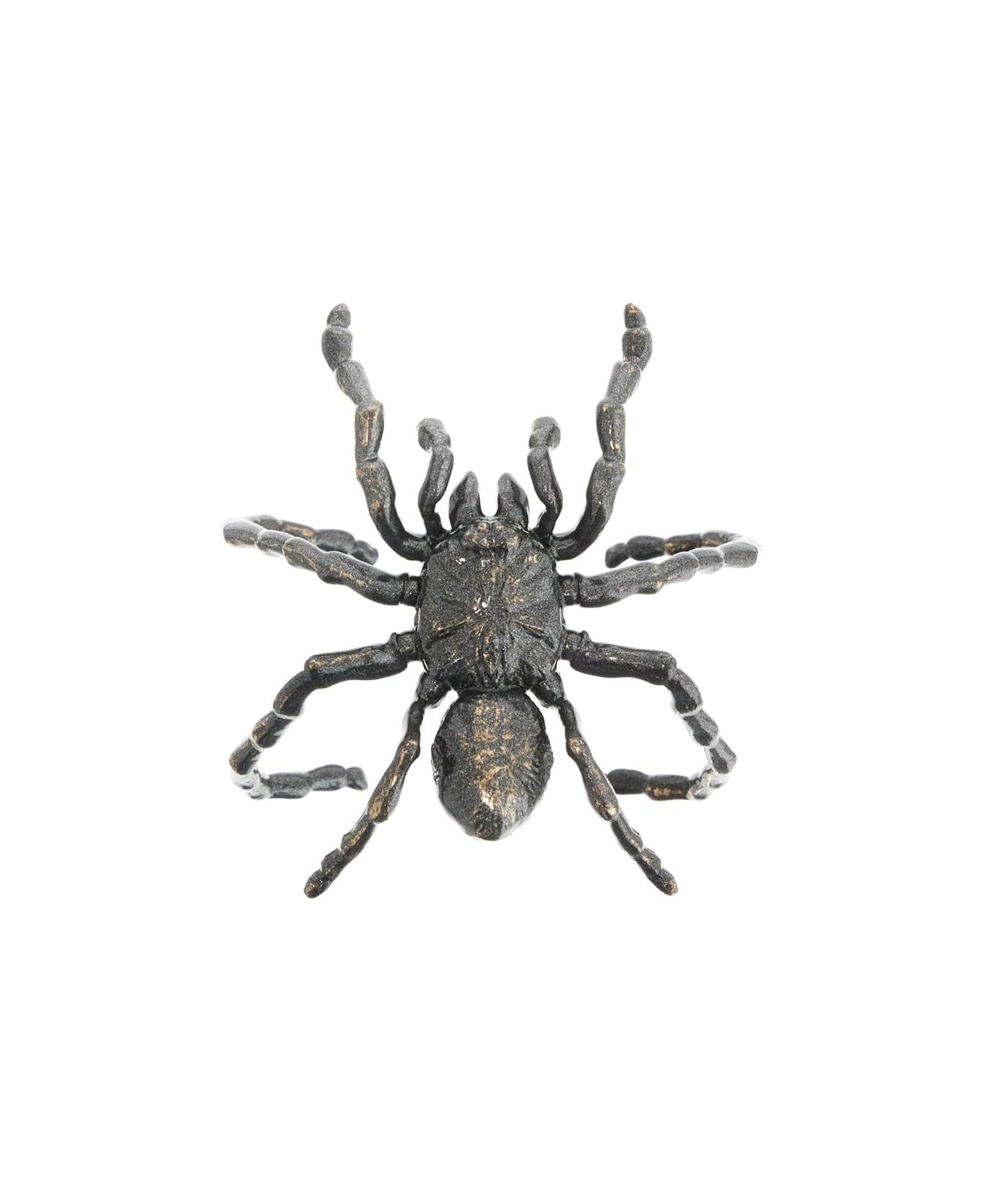 This Y-Project rigid bracelet is made of antiqued brass with a rutenium finish, featuring a sculptural spider design. The item in the photo is one size fits all.