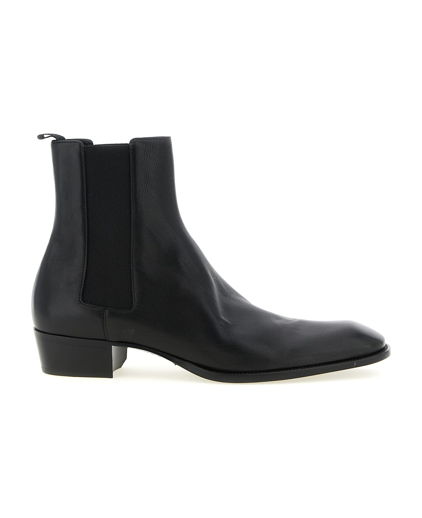 'Stanton' hammered leather ankle boots, Chelsea model with rounded square toe, side elastic inserts, lamellated heel, leather sole. Composition: 100% calfskin leather (Bos Taurus)