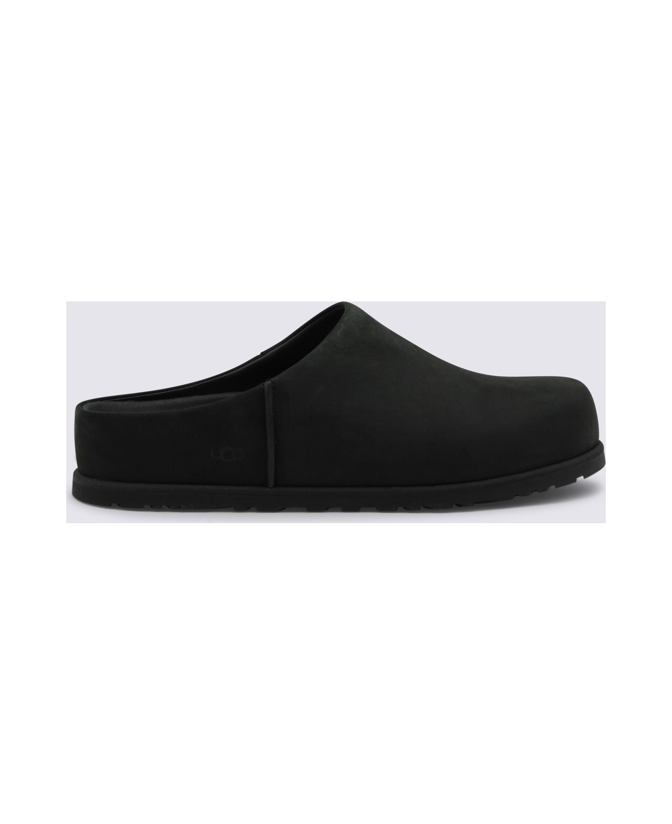 Black leather flats from Ugg featuring round toe, open back, logo patch and leather sole. Composition: _cover, 100% Le Sole, 100% Elastodiene