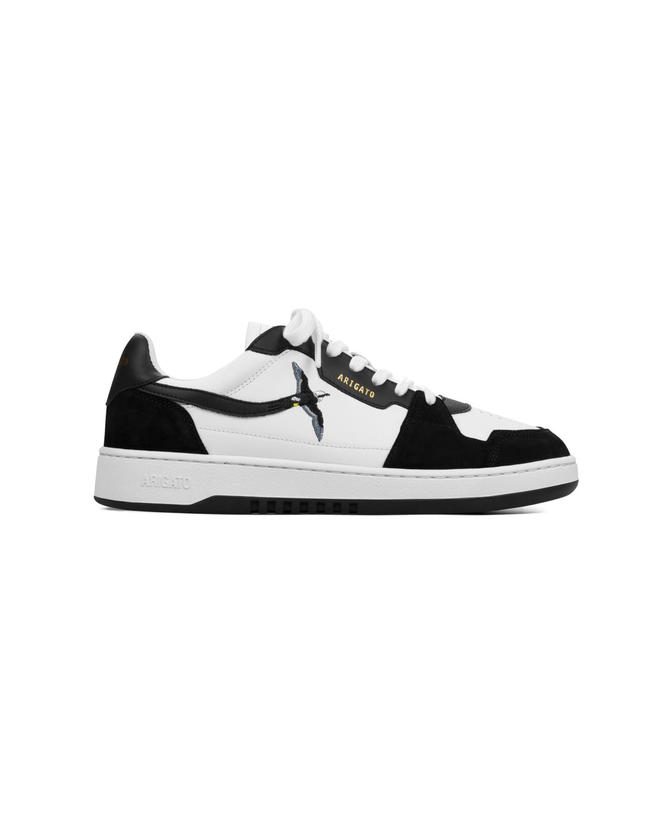 Axel Arigato Black/white sneakers with perforated toe and front lace-up closure Composition: Upper:, 49% Leather +, 39% Suede +, 12% Recycled Polyester ; Lining:, 88% Recycled Polyester +, 12% Microfibre ; Sole:, 80% Rubber +, 20% Recycled Rubber