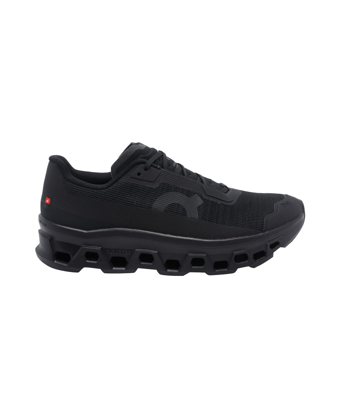 On black Cloudmonster void sneakers, round toe, laces closure, lateral tone on tone logo