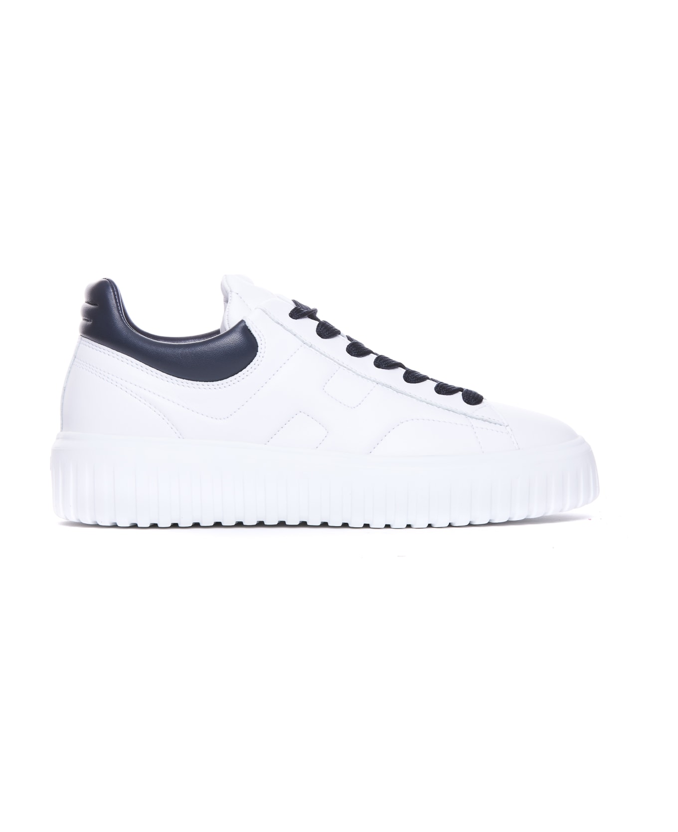 Hogan white H-Stripes sneakers, leather upper, laces closure, logo, round toe Composition: 100% Leather Upper/ Rubber Sole