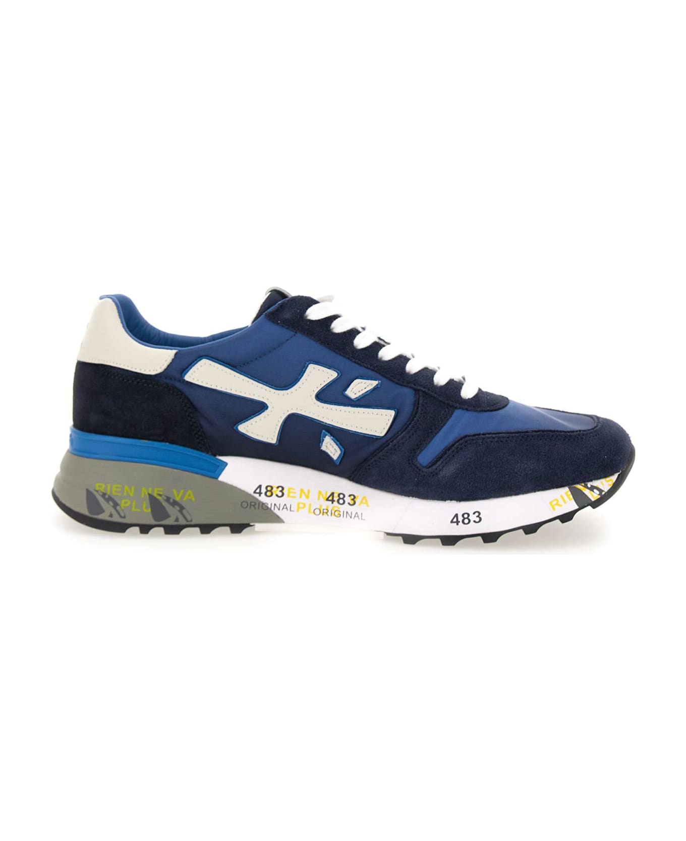 Premiata men s "Mick 5692" in leather sneakers, blue, grey leather inserts, mix of technical materials, high quality leather, gritty and comfortable, sporty style, lace-up fastening, round toe, side logo on tongue and back, ergonomic and lightweight rubber sole with 4cm high prints.