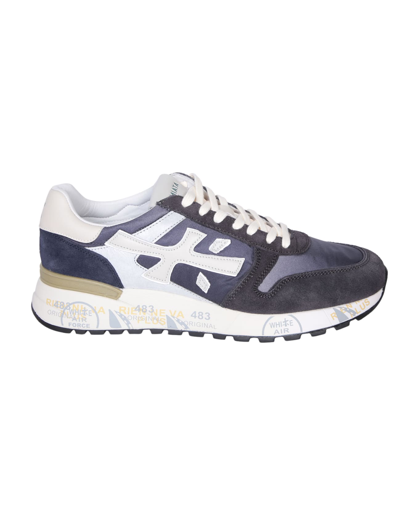 These Premiata Mick Blue sneakers blend style and comfort with their striking design in blue suede and white mesh, complemented by a sturdy sole for optimal support.
