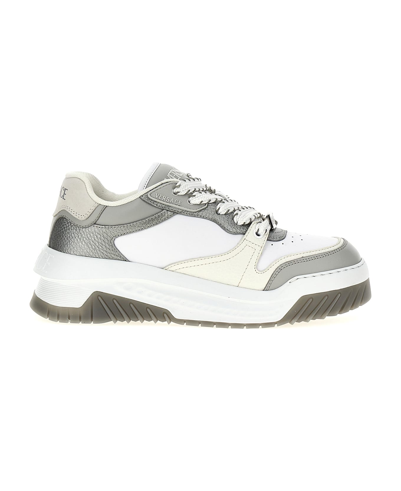 'Odissea' sneakers in smooth and grainy leather with contrasting details, Greek metal on the front, lace-up closure, logo embroidery on the tongue, rubber sole. Composition: 100% calfskin leather (Bos Taurus)