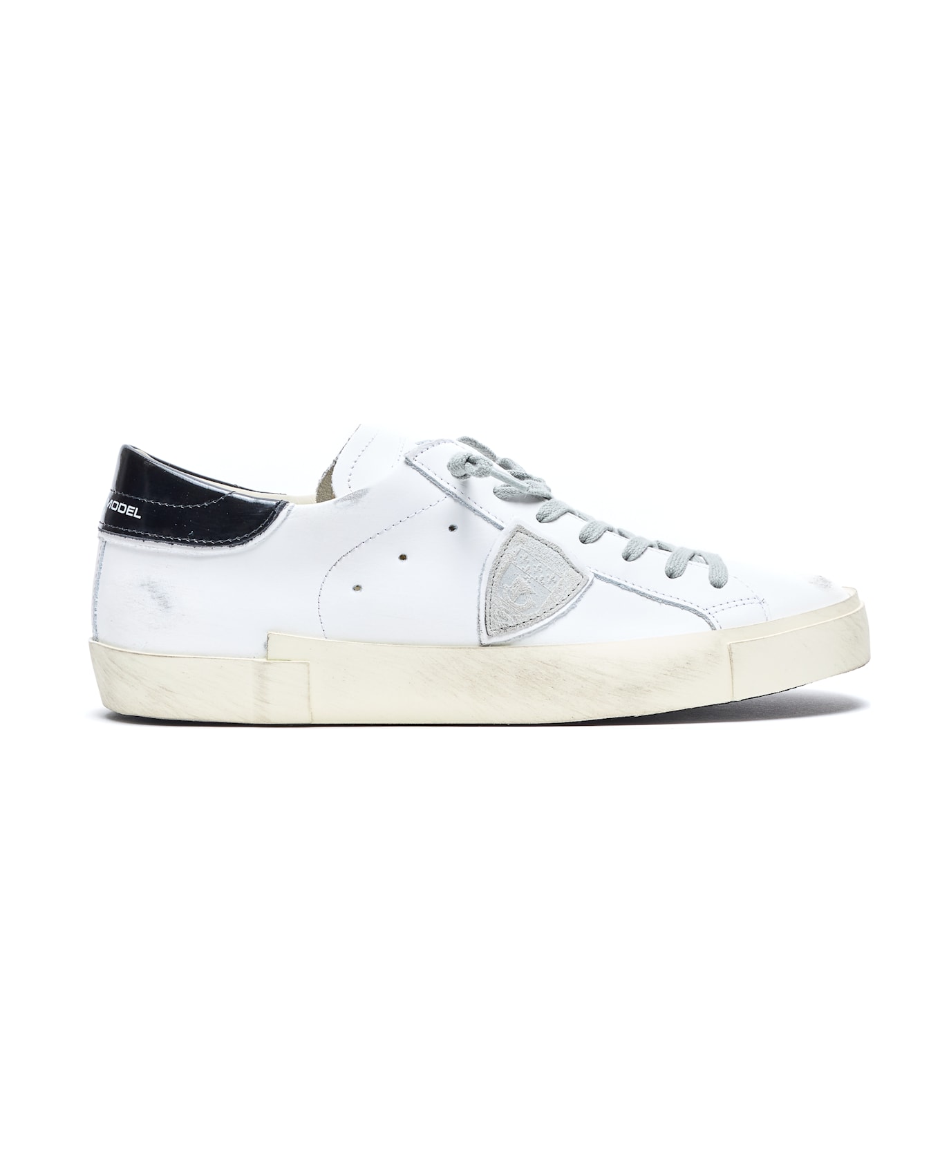 Philippe Model white Prsx sneakers, round toe, lateral logo, leather upper, laces closure. Composition: 100% Leather And Suede / Rubber Sole