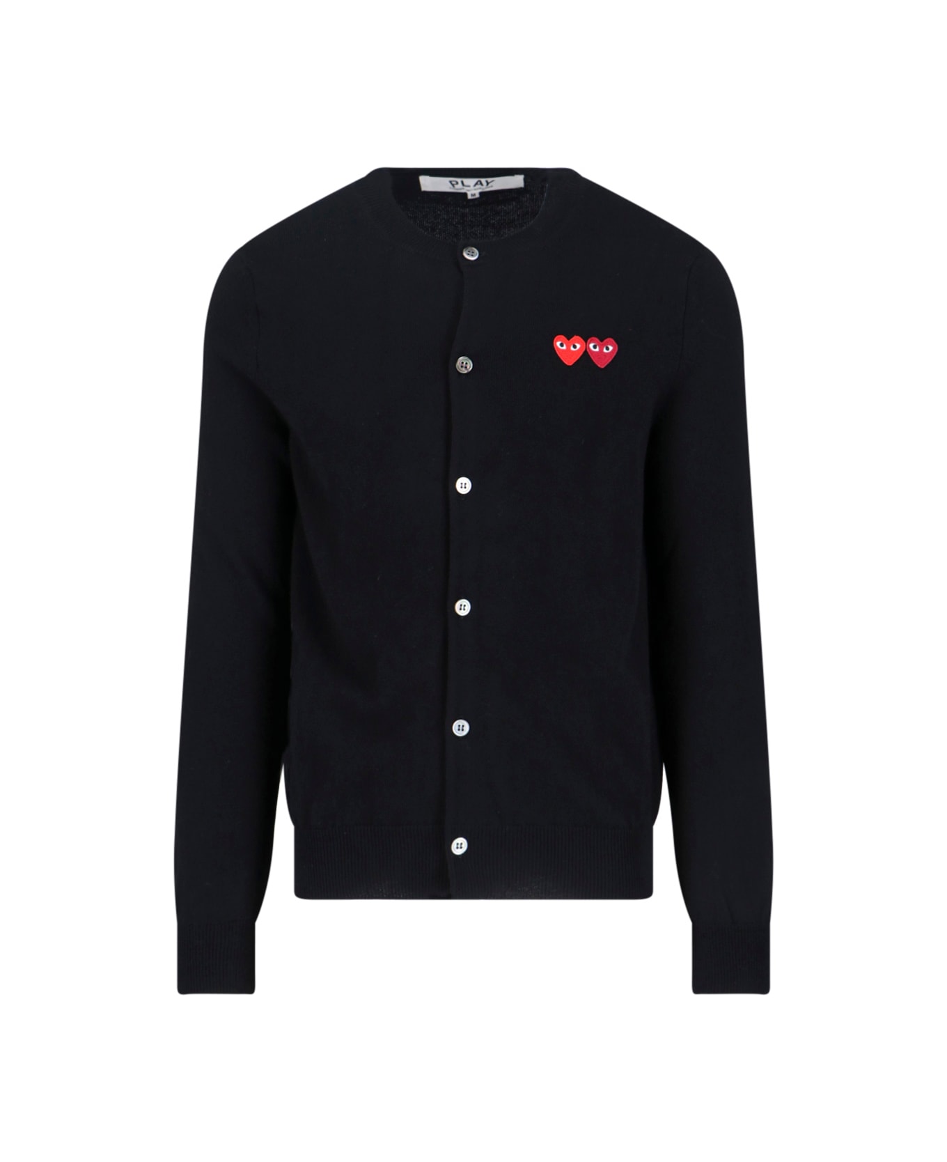 Comme Des Garçons Play logo cardigan in black wool with crewneck, button closure, embroidered detail on the front, ribbed trim, and straight hem. Composition: 100% Wool