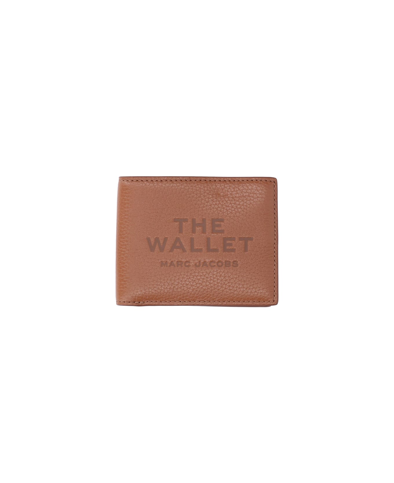 Marc Jacobs 'The Wallet' bi-fold wallet in brown hammered calf leather with tonal engraved logo on the front, one top bill slot, six inner card slots, tonal back logo patch.