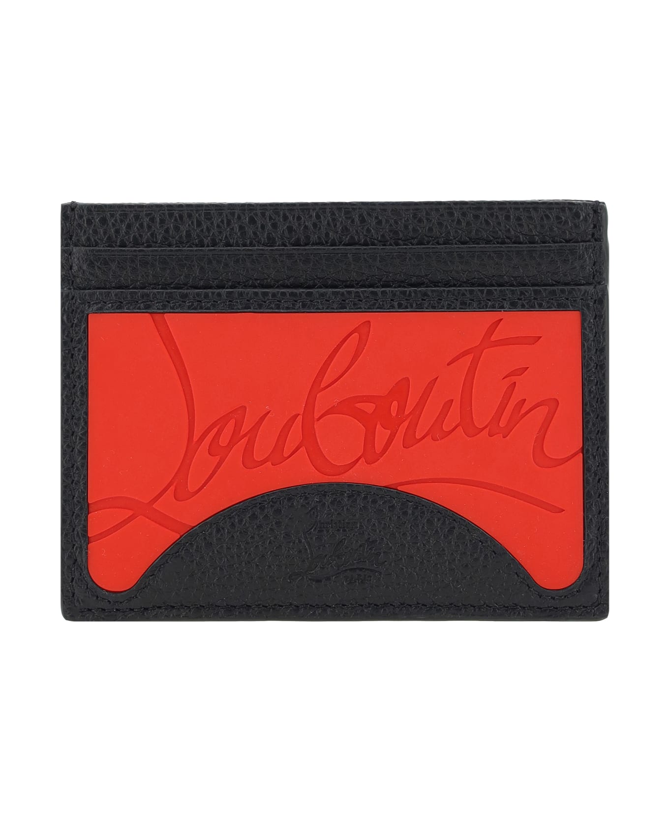 Christian louboutin's leather card holder is a stylish and functional accessory, featuring card slots on the front and back for practical and compact storage. the brand's iconic monogram is press-stamped on the front, while the contrasting insert in the unmistakable red color adds a distinctive and refined touch, symbolizing christian louboutin's bold style.