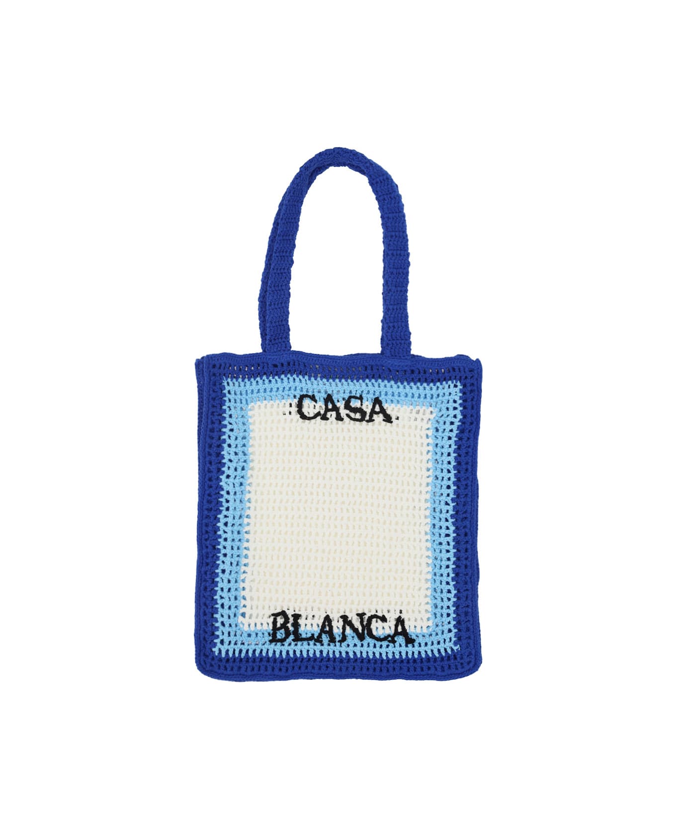 Cotton atlantis handbag by casablanca, double soft crochet handles at top, crochet design, single interior compartment, iconic brand monogram embroidered in contrasting front and back, multicolor pattern. Composition: 100% % Cotton