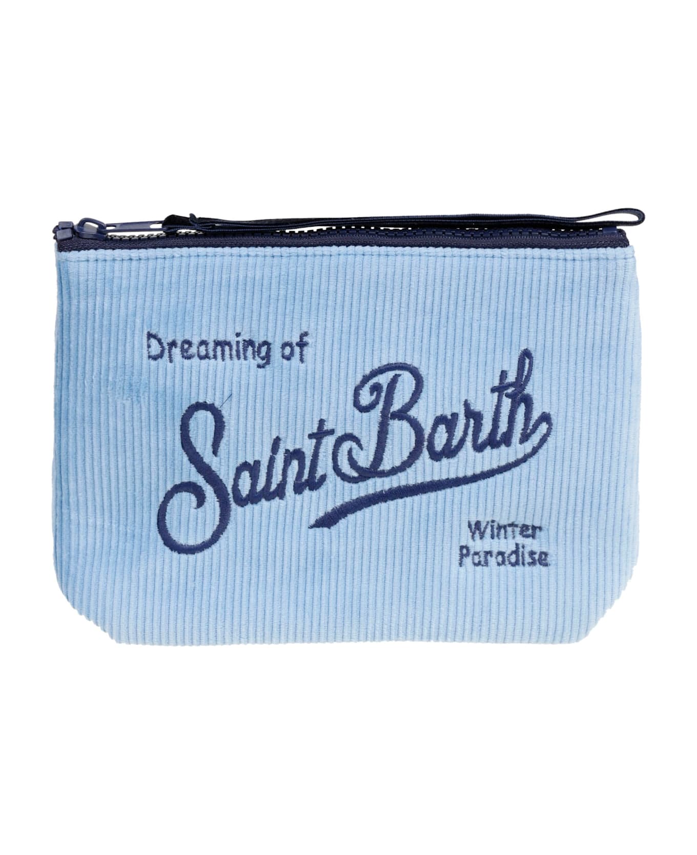 MC2 SAINT BARTH velvet effect clutch with front writing, zip closure, and wrist strap. Composition: 70% Sbr, 30% Pl