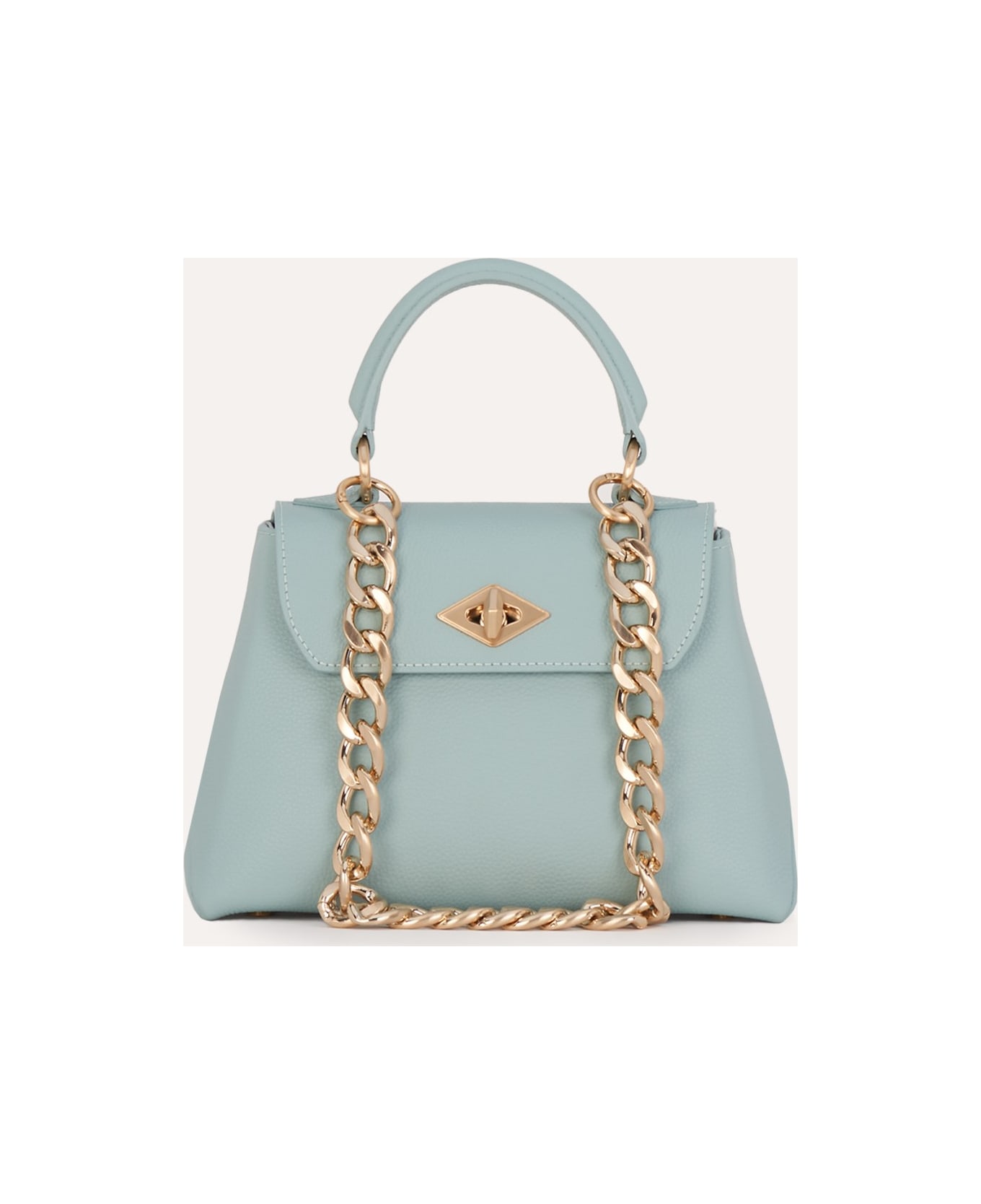 The Diamond Bag XS is made of small grain calf leather. The iconic model is beautified with satin gold details that recall the shape of classic diamond. The interior is in suede-effect fabric with pockets for extra comfort. The bag has a removable adjustable leather shoulder strap and a chain strap for carrying on the shoulder. Protective dust bag included.