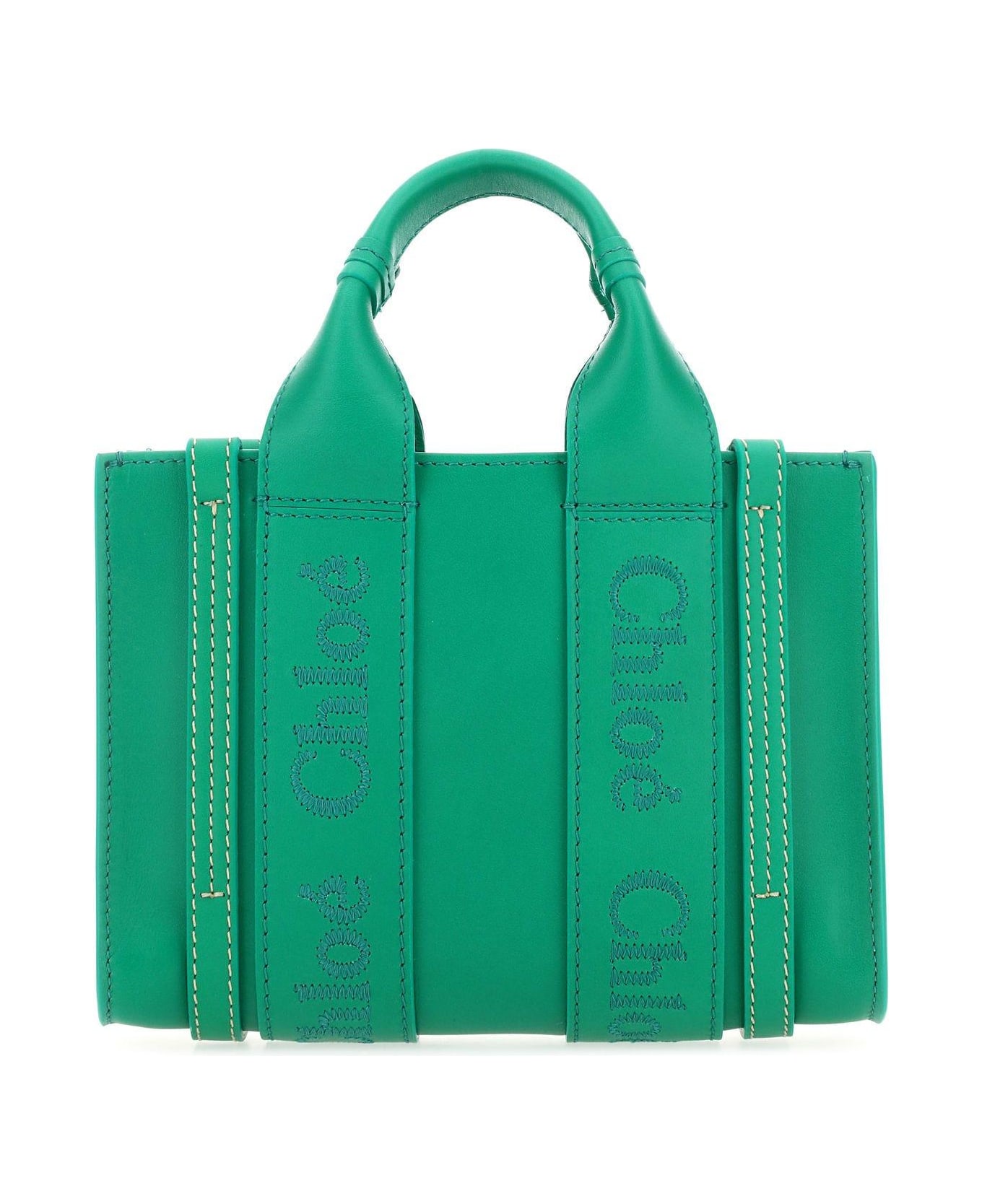 Pop green Green Leather Mini Woody Handbag from Chloé Handbag realized in smooth calf leather characterized by tonal embroidered logo at the front and the back.