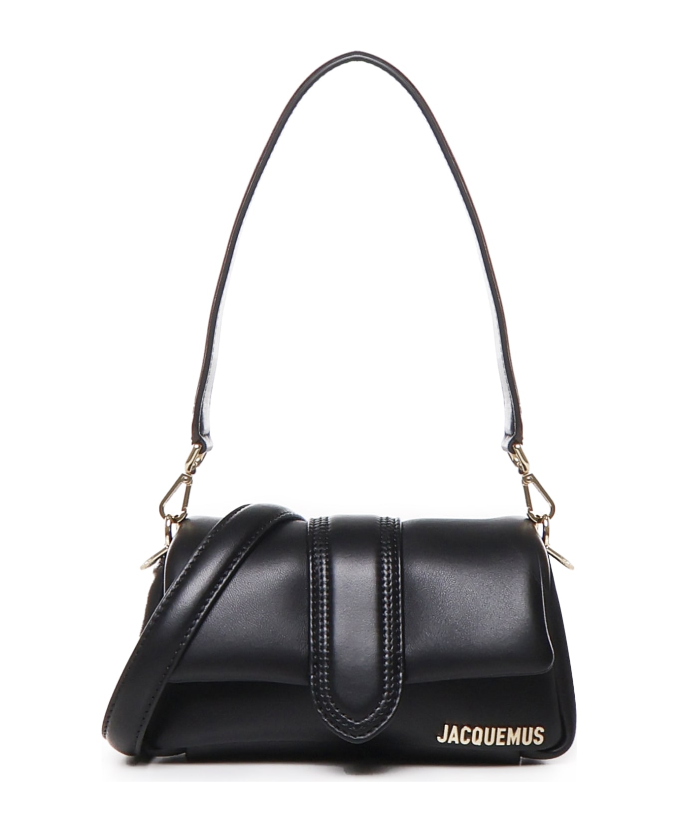 -Padded lambskin shoulder bag -Metal lettering logo -Flap at the top with magnetic closure -Flat handle -Removable shoulder strap -Single compartment -Internal bellows pocket -Cotton lining -Dimensions: 20. 5x11 cm -Color: Black Composition: 100% Lambskin