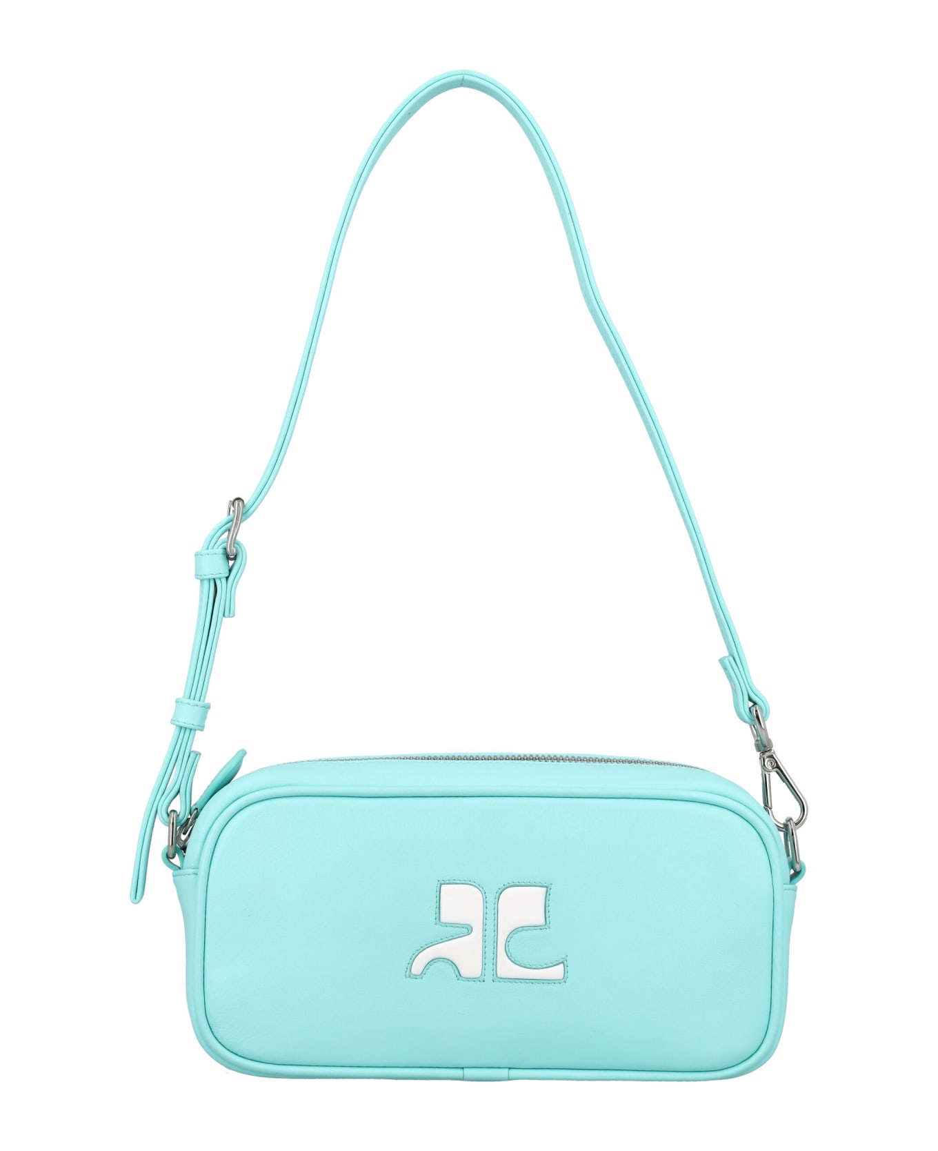 Leather Baguette Camera Bag By Courregès. Featuring: Zip Fastening Adjustable And Removable Shoulder Strap Signature Logo At Front Internal Flat Pocket Silver Tone Metal Finish Width: 21,5 Cm Height: 10,5 Cm Depth: 5,5 Cm