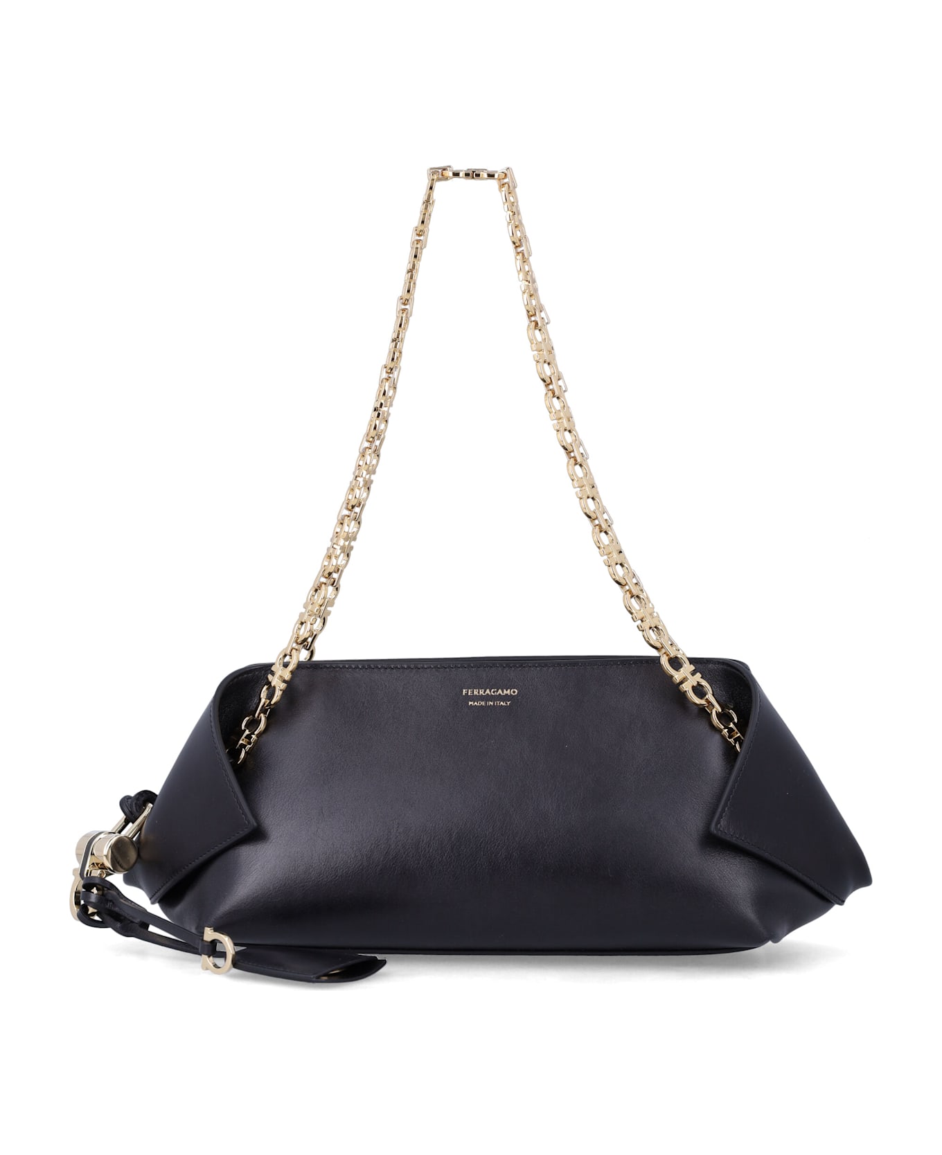 A Blend Of Contemporary Elegance And Refined Craftsmanship, This New Ferragamo Shoulder Bag Captivates With Its Soft Silhouette And Sophisticated Details. Crafted From Supple Calfskin Leather, The Folded Corners Enhance Its Fluid Shape, While Gold-tone Hardware Adds A Luminous Touch. The Double-slider Zip Opens To Reveal A Spacious Lined Interior With Zip Pocket, Completed By A Custom Charm And Covered Key Fob For A Distinctive Finish. Folded Corners For A Fluid Silhouette Metal Chain Straps Gold-tone Metal Hardware Double-slider Top Zip Closure Lined Interior With Zip Pocket Custom Charm And Covered Key Fob Spacious And Structured Design Height: 14 Cm Width: 26 Cm Depth: 13 Cm