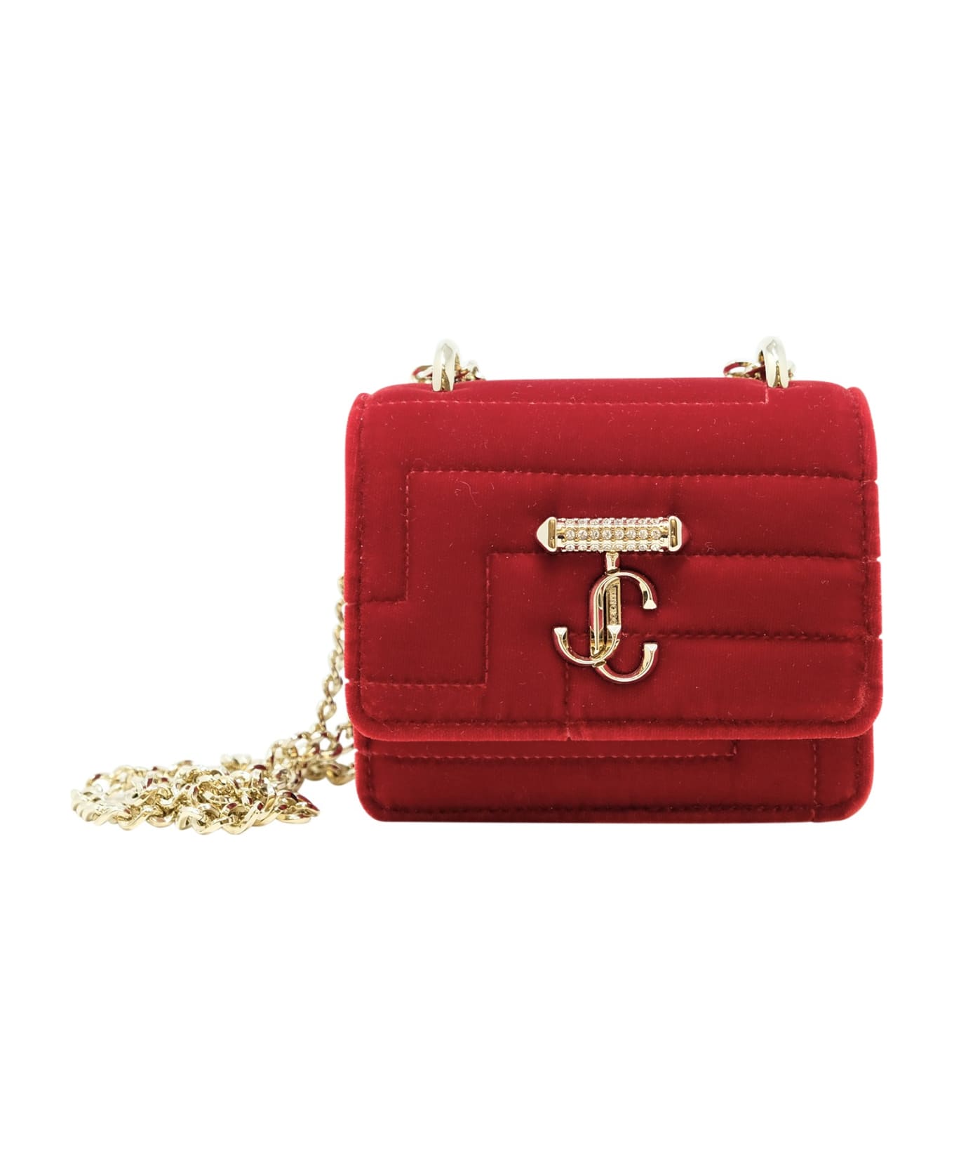JIMMY CHOO J000156572 RED VELVET MICRO VARENNE CRYSTAL BAG, product code J000156572, color code RED, material VELVET, size 10X13X532 cm, season SS23