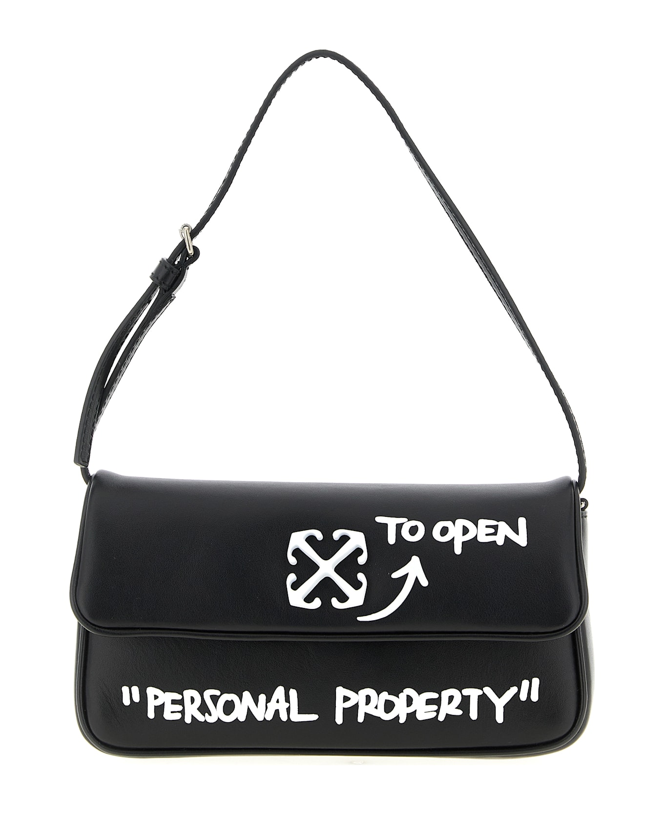 Jitney Quote 0. 7 shoulder bag in leather-effect fabric with contrasting graphic print, adjustable and removable handle, magnetic flap closure, front metal 'Arrow' logo, back pocket, and removable shoulder strap.