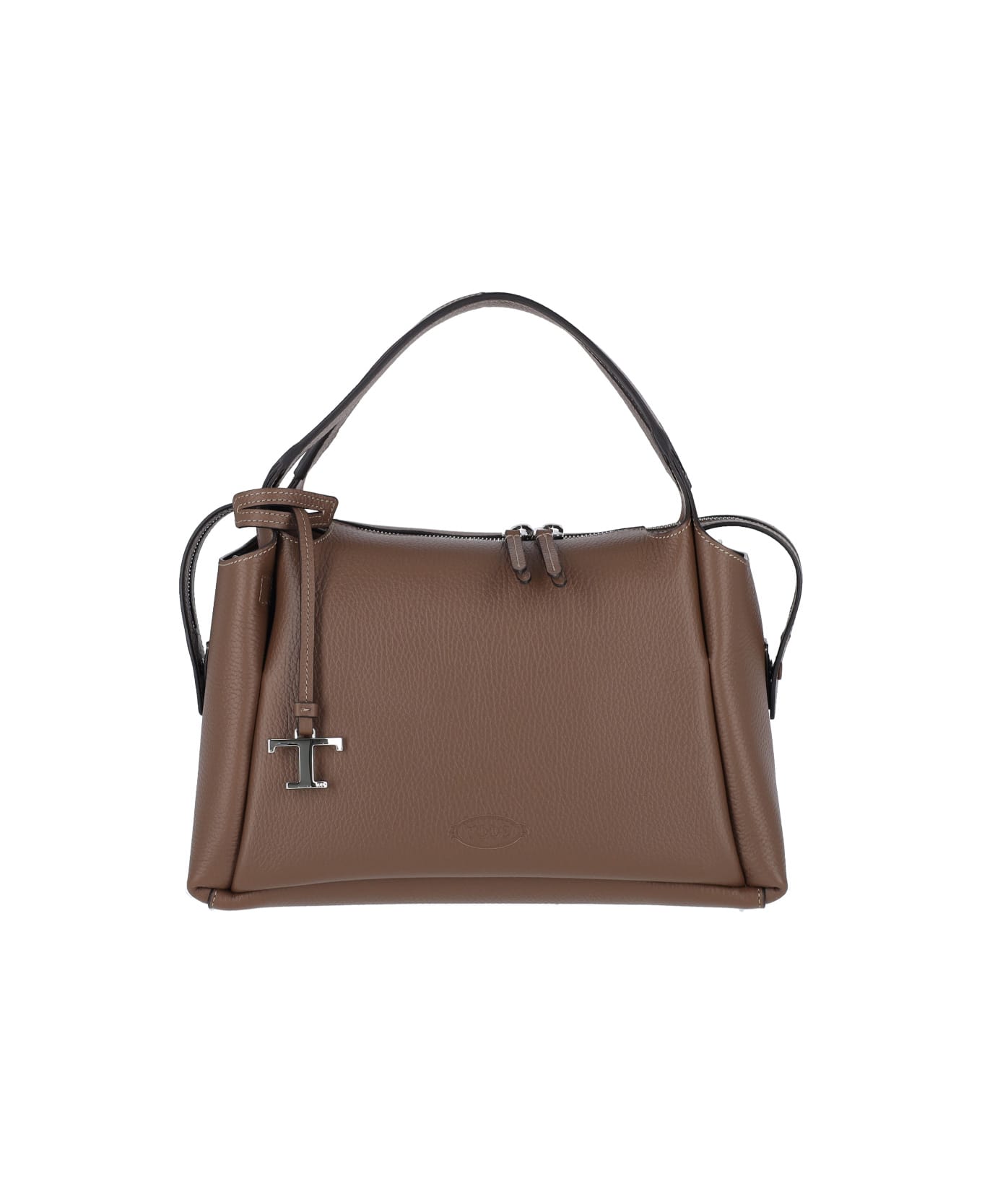 Medium "Apa" Tod s brown calf leather bag, two top handles, double zip closure, adjustable and removable shoulder strap, "T-Timeless" logo charm, inside pockets, one main compartment. Composition: 100% Calf Leather