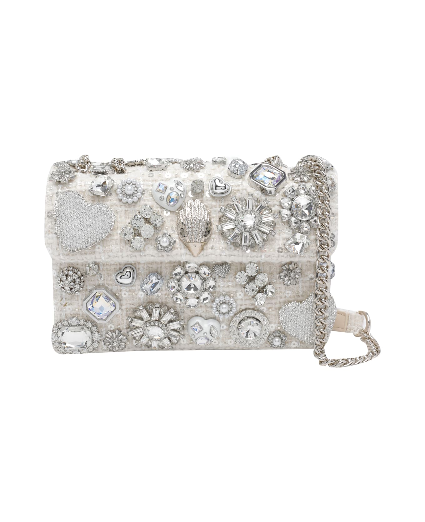 Kurt Geiger white medium Kensington crossbody bag, inner open pocket, magnetic closure, 2 adaptable sliding straps, applications allover Composition: 100% Polyester