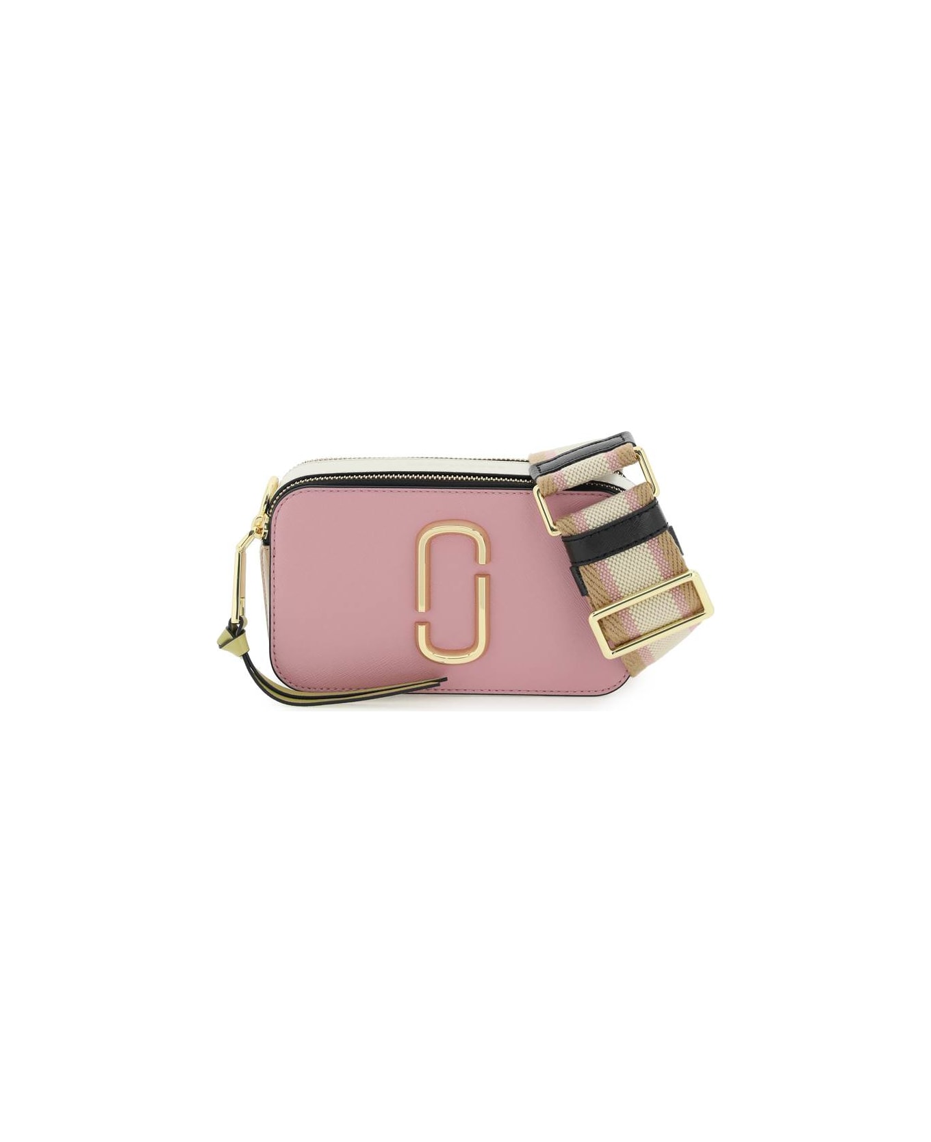 The Colorblock Snapshot camera bag by Marc Jacobs in multi-tone saffiano leather with two independent zipped compartments and front metal Double-J monogram. Adjustable and removable multicoloured webbing strap, leather zip pullers, rear open flat pocket, debossed logo on the top. Fabric lining, one inner open flat pocket, gold-tone metalware.