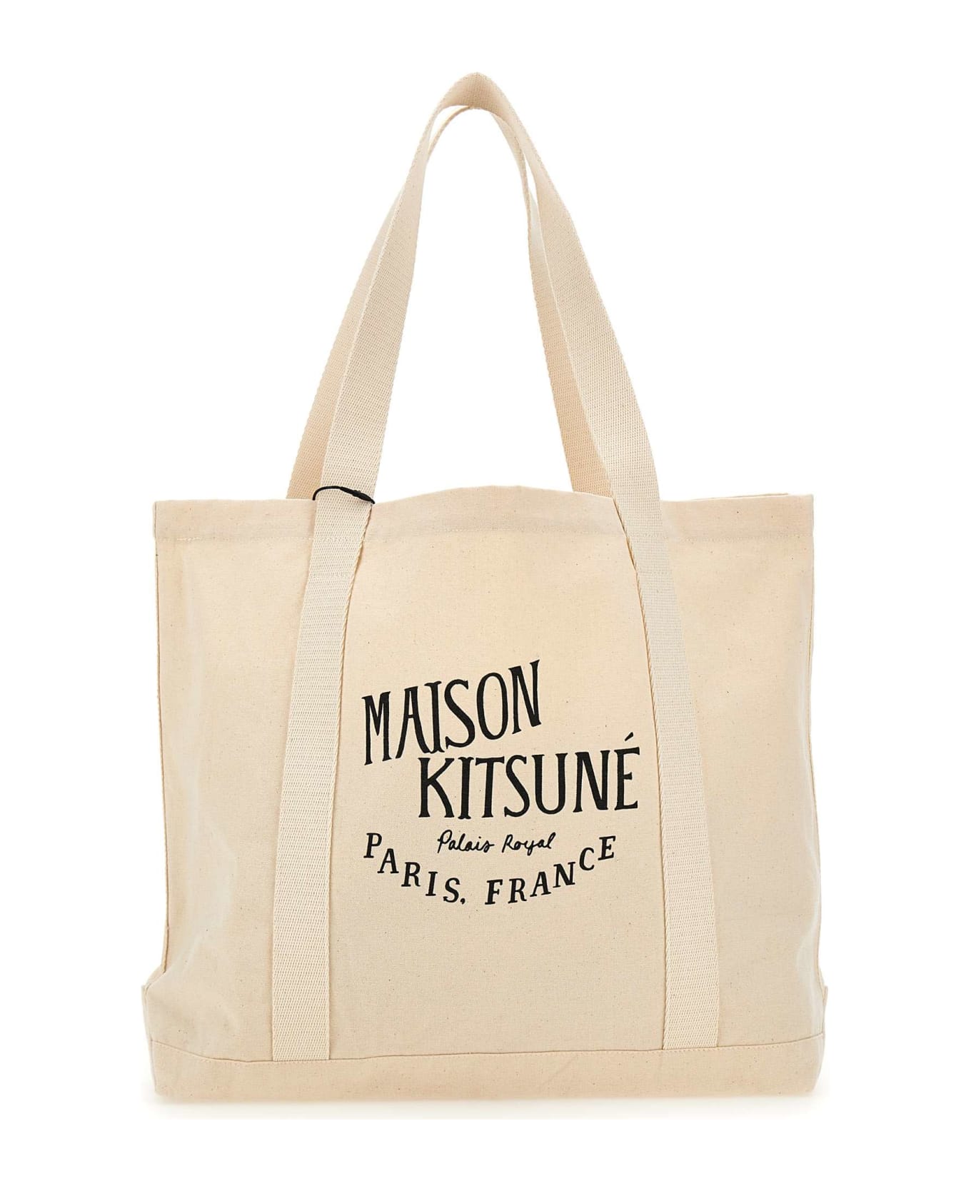 Maison Kitsunè "Palais Royal Shopping Bag" women's cotton canvas shoulder bag, ecru, double handle,maxi contrasting black front print, internal slip pocket. Dimensions: length 46cm, height 36cm.