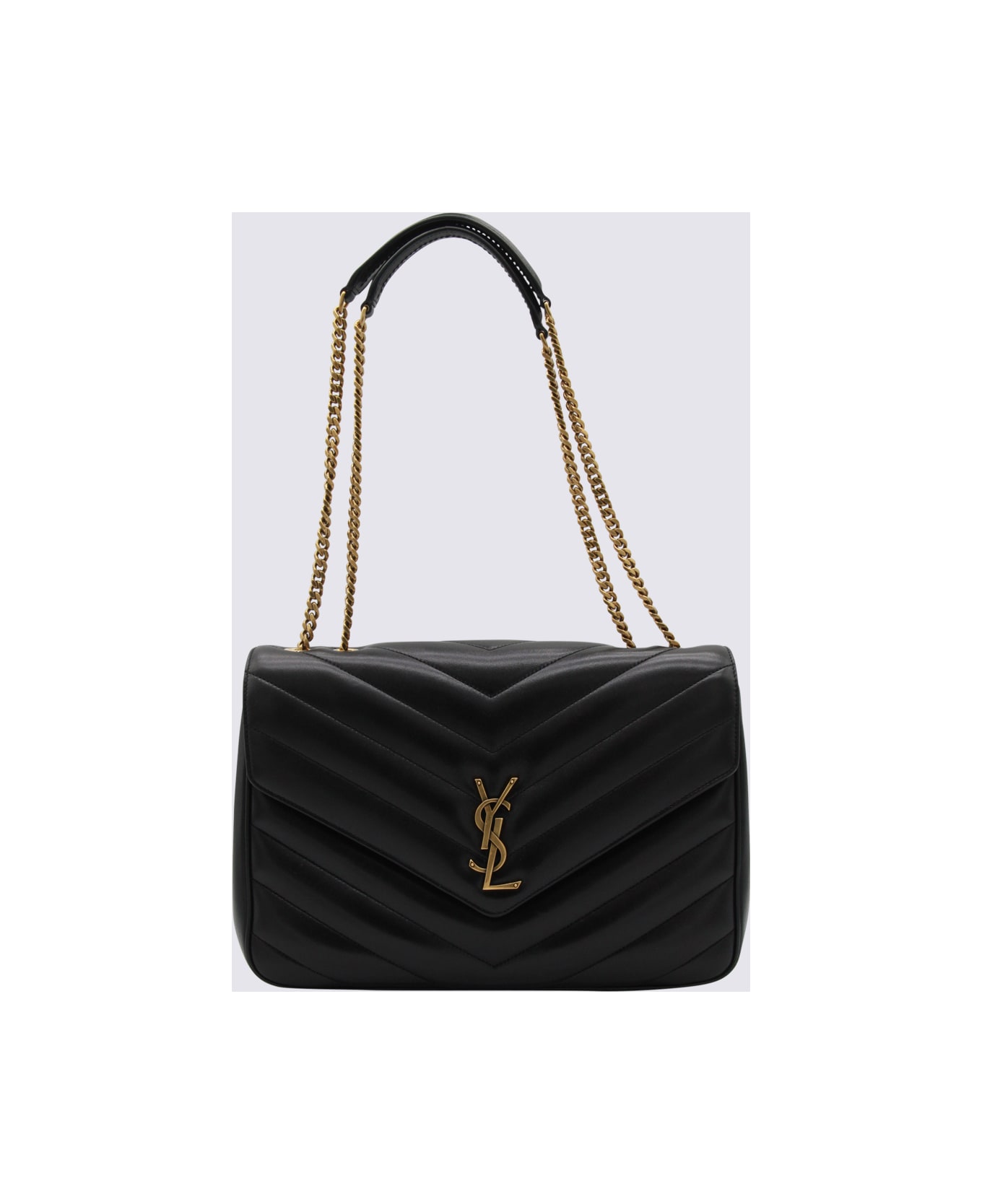 Black leather LouLou large top handle bag from Saint Laurent featuring chain, adjsutable strap, gold tone hardware and pockets. Composition: _, 100% Le