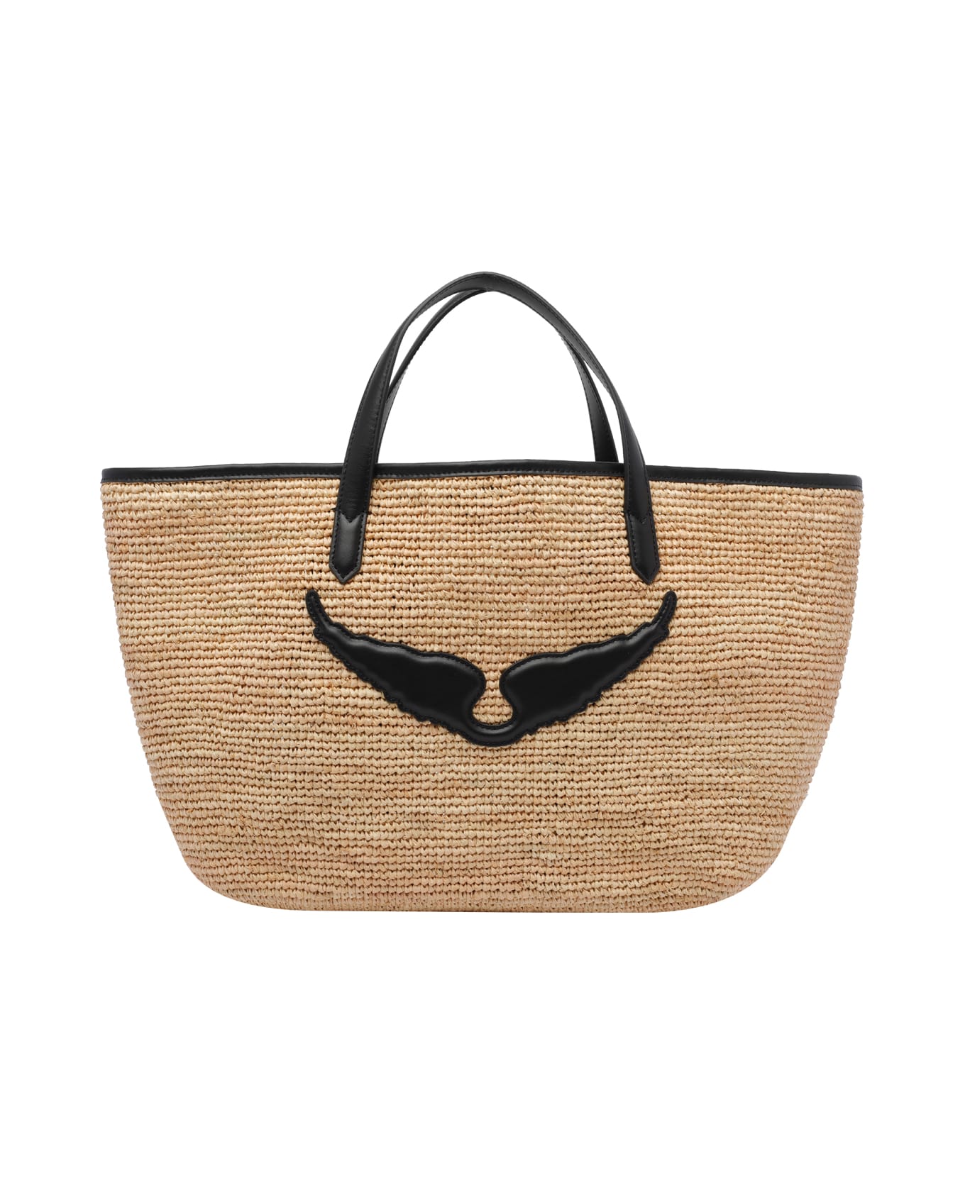 Zadig&Voltaire beige and black Le Wings panier bag, two handle, rafia effect, fronta logo in leather