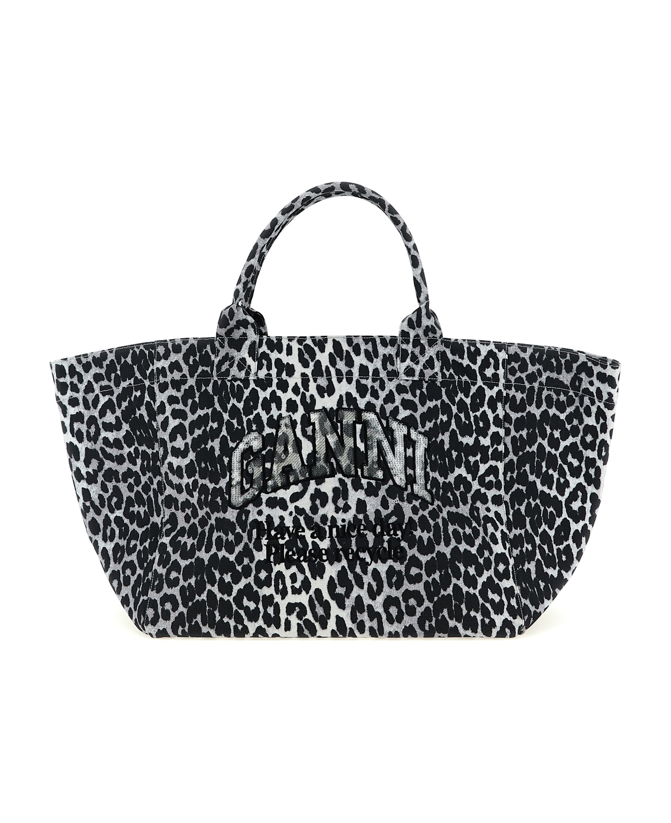 'Leopard Sequin XXL Tote' canvas shopping bag with embroidery with front sequin application, double fixed handle. SUSTAINABLE: This product is made with recycled cotton. Composition: 100% recycled cotton