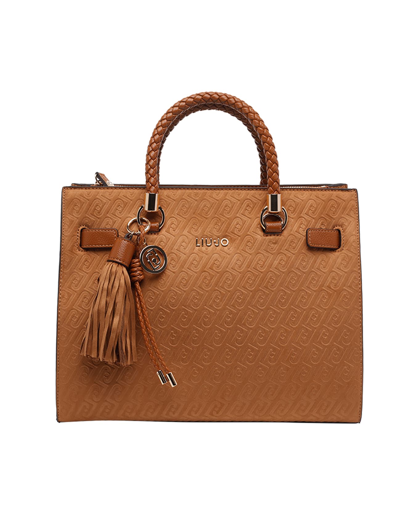 Liu Jo brown tote bag, magnetic closure, 2 compartments, central zip pocket, inner open pocket and one with zip, 2 handles, adjustable and removable shoulder strap, logo Composition: 100% Polyester