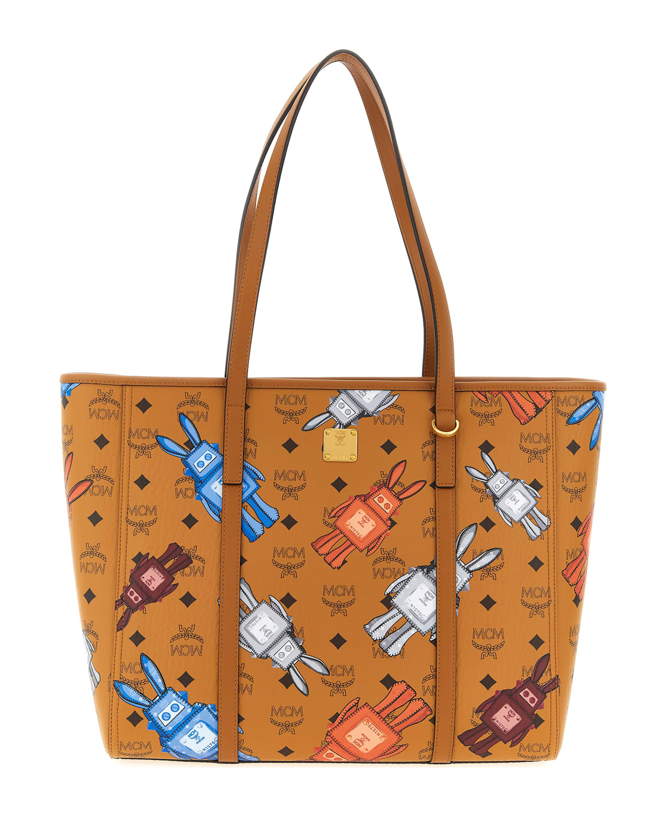 Medium 'Toni' shopping bag in Visetos monogram canvas, graphic pattern 'Rabot' the Maison's cybernetic hare and leather, metal tag with front engraved logo, double fixed handle, top zip closure, metal details.