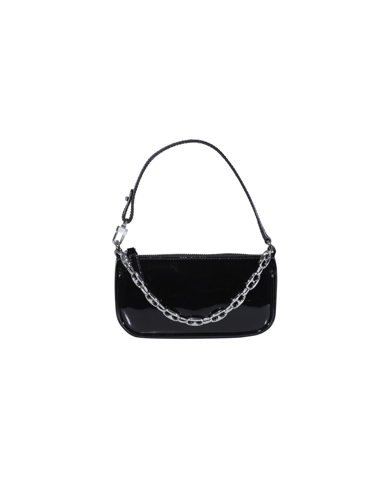- man shoulder bag, zip closure, handle with chain, black - Composition: 100% Patent Leather