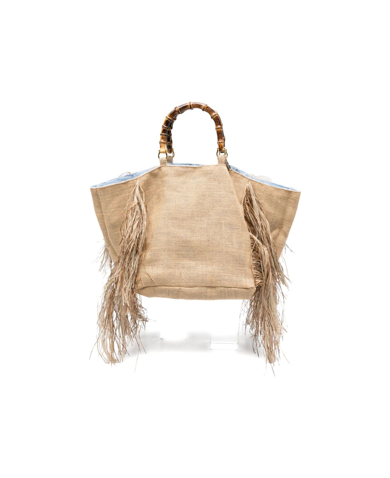beige bamboo handle fringed trim