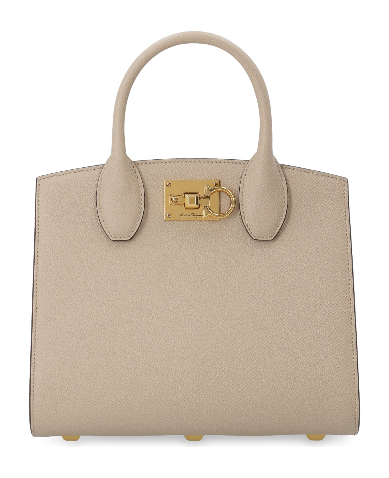 Pebbled calfskin item metal logo on the closure two leather handles flip-lock closure two internal flat pockets adjustable and removable shoulder strap gold-tone metal hardware leather lining protective bottom metal studs width: 22 cm height: 19 cm depth: 11 cm strap: 100 cm 100% calf Composition: 100% % Calf