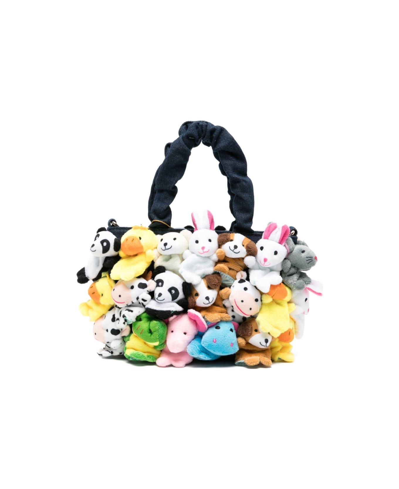 blue and multicolour plush details top handle detachable strap gold-tone hardware interior logo patch