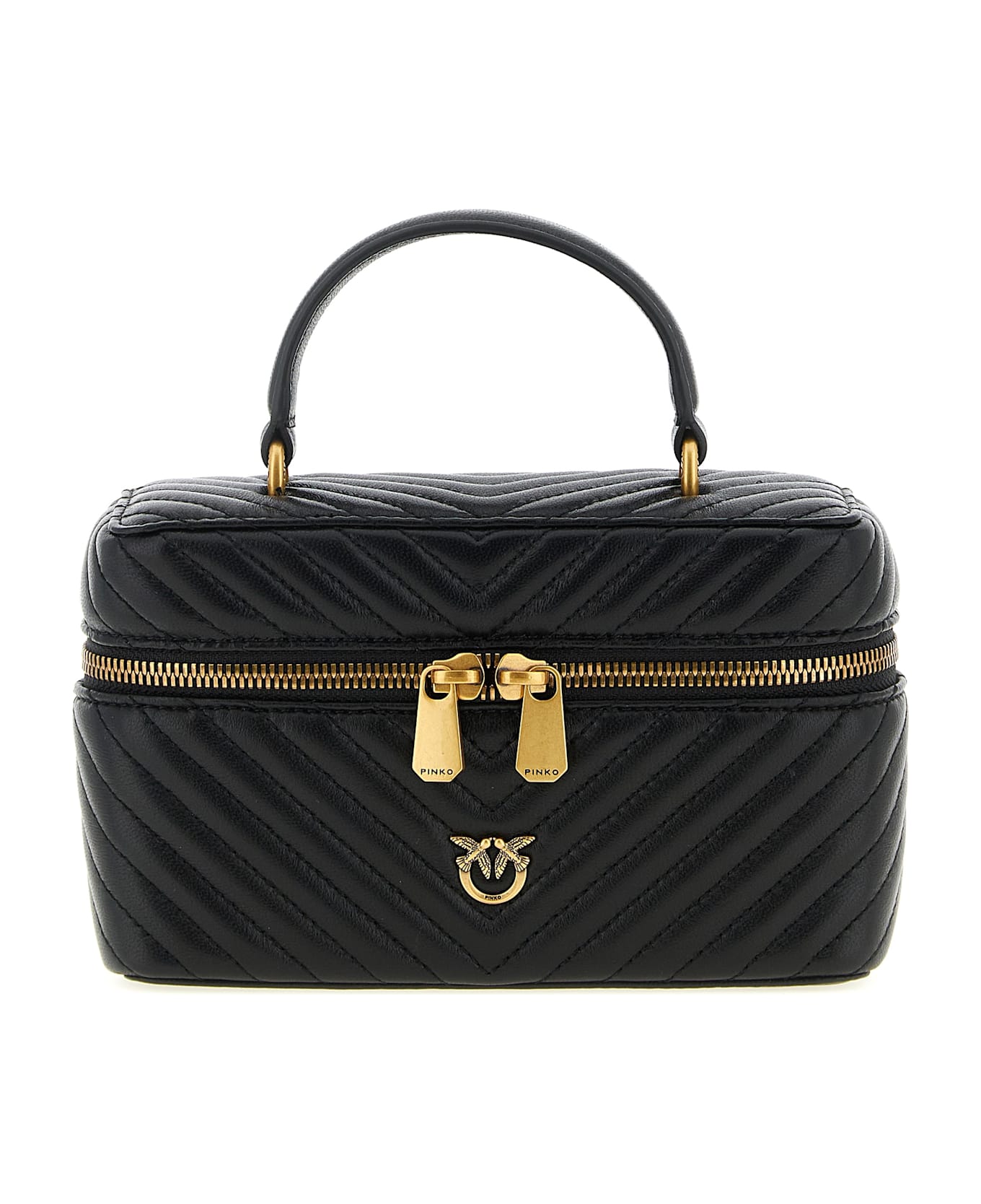 'Vanity Soft Mini' quilted nappa leather handbag with chevron pattern, antiqued metal 'Love Birds Diamond Cut' logo on the front, fixed handle, zip closure, hard bottom, adjustable and removable shoulder strap.
